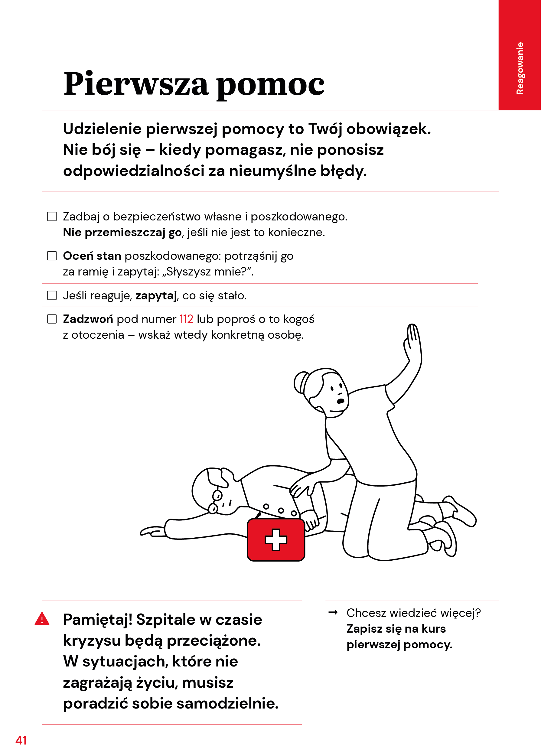 Pamiętaj! Szpitale w czasie kryzysu będą przeciążone. W sytuacjach, które nie zagrażają życiu, musisz poradzić sobie samodzielnie.
