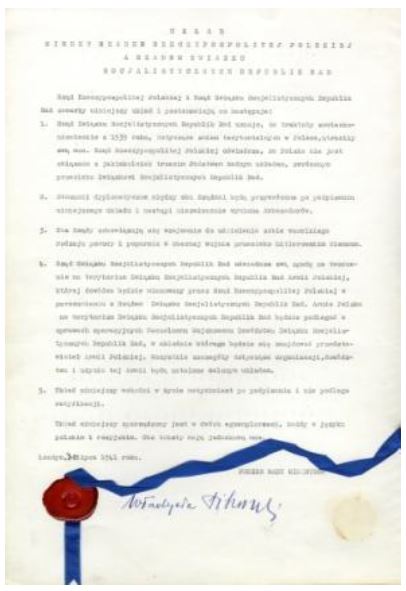 A 30 de julho de 1941, foi assinado um pacto que se tornou a causa de enorme controvérsia no mundo da política polaca e que levou a uma grave crise governamental, mas que ao mesmo tempo permitiu salvar as vidas de milhares de cidadãos polacos deportados pelas autoridades soviéticas após 1939 para as profundezas da URSS. As conversações entre o Primeiro-ministro Władysław Sikorski e o Embaixador da URSS em Londres, Ivan Maisky (os seus nomes foram logo utilizados para se referir ao acordo), tiveram lugar pouco depois do ataque alemão à União Soviética e depois dessa potência se ter tornado parte da coligação anti-Hitler. O Primeiro-ministro polaco, activamente encorajado pelas autoridades britânicas, decidiu negociar, o que levou a uma normalização das relações polaco-soviéticas.