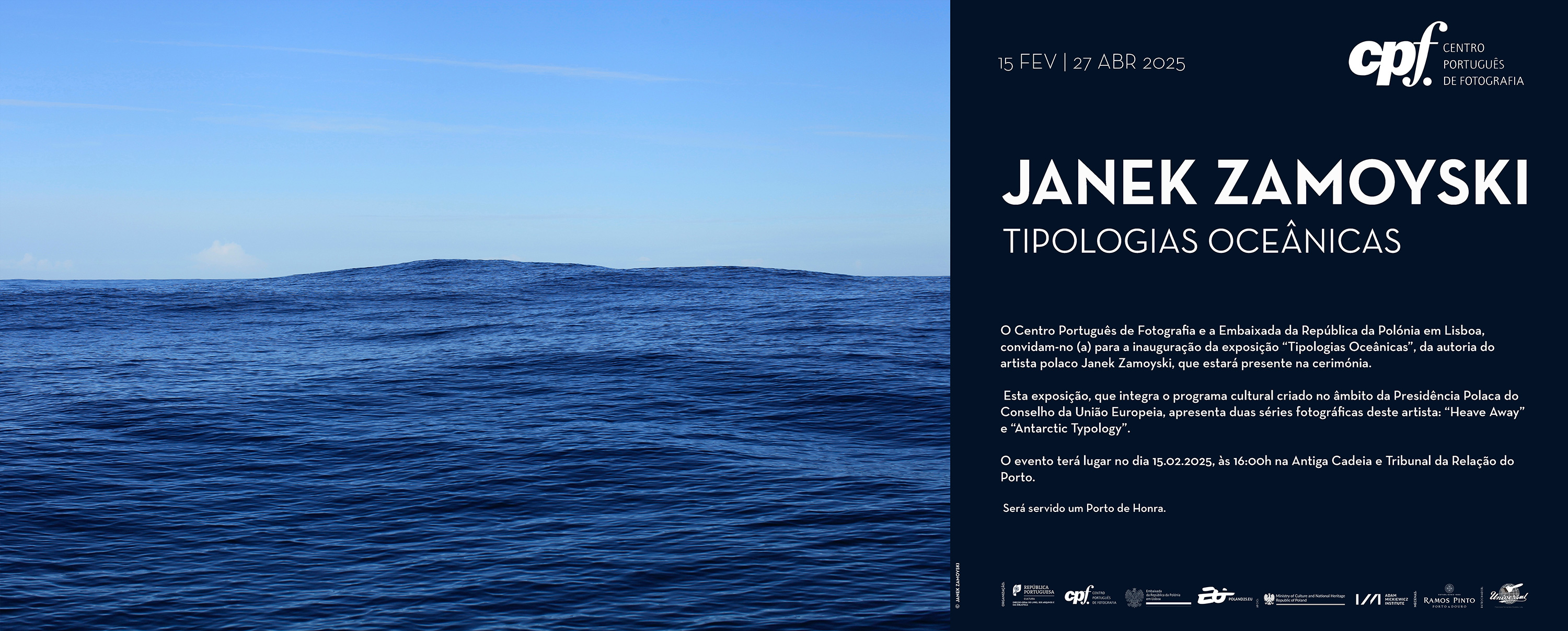 Entre os dias 15 de fevereiro e 27 de abril o Centro Português de Fotografia irá receber uma exposição de fotografia do artista polaco Janek Zamoyski "Tipologias oceânicas".