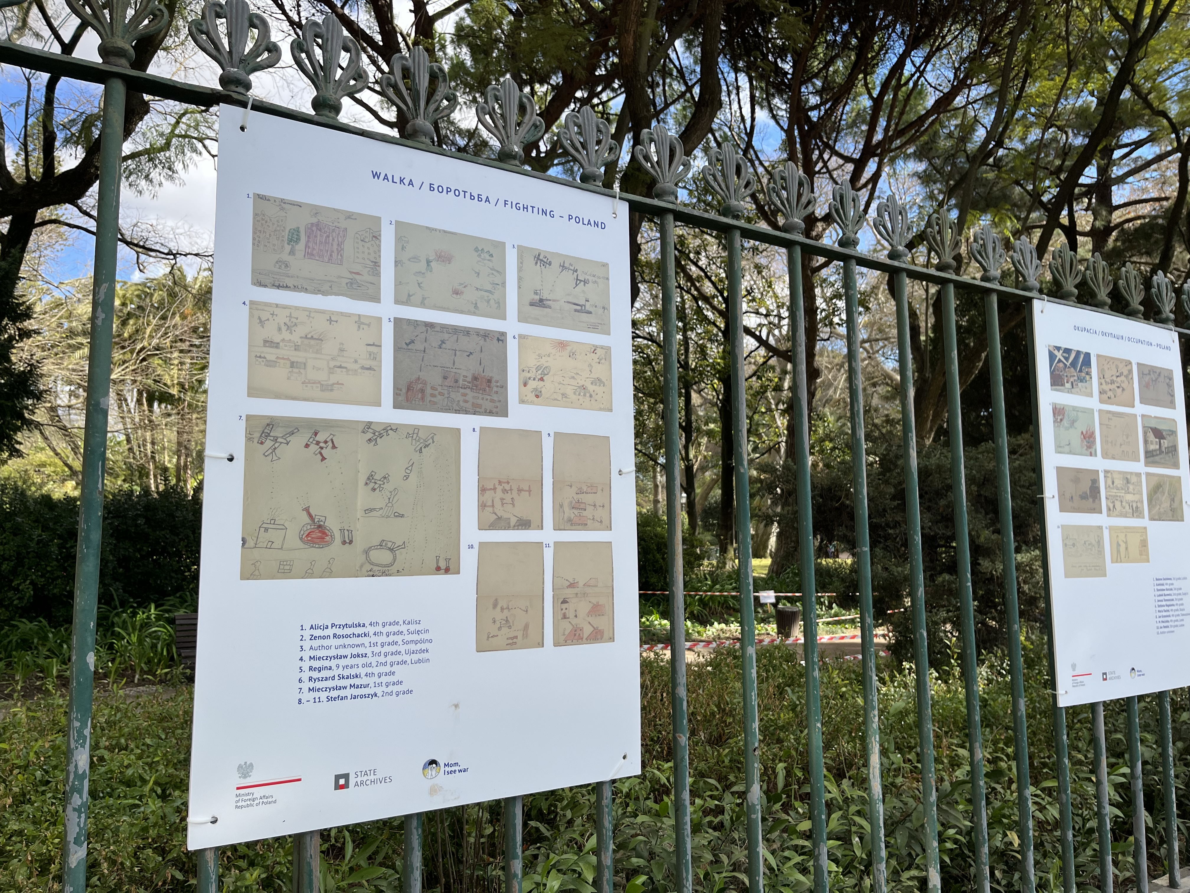 A exposição apresenta os desenhos históricos das crianças polacas de 1946, que constituem um relato das suas experiências do tempo da Segunda Guerra Mundial e da ocupação da Polónia pela Alemanha nazi de 1939-1945, guardados no Arquivo de Registros Novos em Varsóvia, e os desenhos contemporâneos das crianças ucranianas relativos à atual agressão russa injustificada na Ucrânia, reunidos no site Mom I see war.