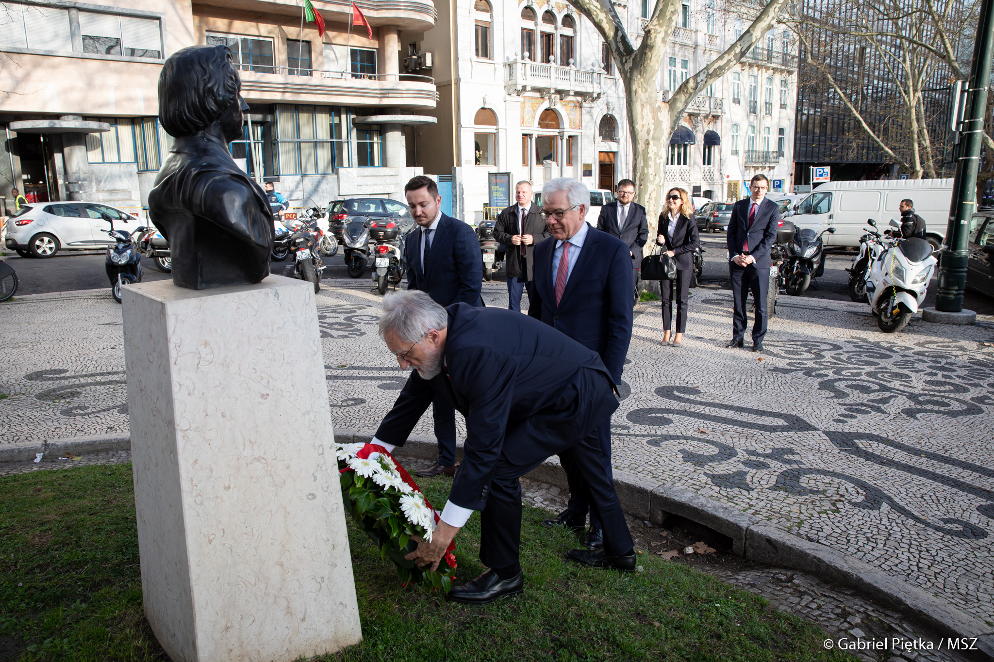 Durante sua visita em Lisboa, o Ministro dos Negócios Estrangeiros depositou também flores no busto de Frederic Chopin e encontrou-se com representantes da comunidade polaca residente em Portugal. Agradecendo aos representantes da comunidade polaca no estrangeiro pelos seus esforços ativos para manter a identidade polaca, promover a cultura nacional e uma imagem positiva de nosso país, o Ministro Czaputowicz enfatizou os méritos especiais da Associação Sócio-Cultural "Polónia" que opera em Portugal. A presidente da Associação Maria Milewska e a vice-presidente Iwona Sadłowska, receberam das mãos do chefe da diplomacia polaca os distintivos honorários "Bene Merito" concedidos pelo Ministério dos Negócios Estrangeiros em reconhecimento da suas atividades que fortalecem a posição da República da Polónia na arena internacional.