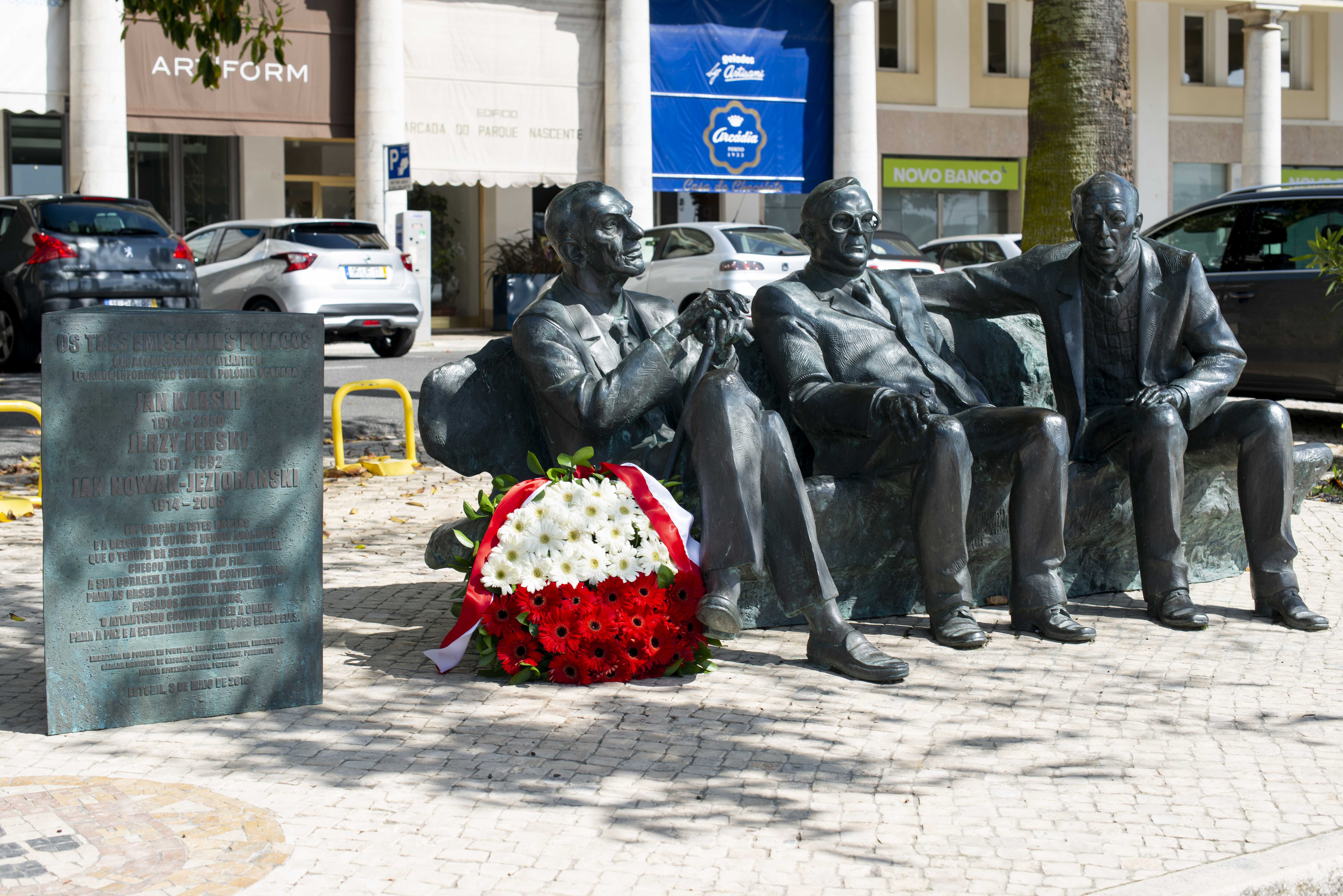Jan Karski, Jerzy Lerski e Jan Nowak-Jeziorański sentaram-se juntos no banco comemorativo em Estoril. Existem poucos lugares em Portugal tão ligados à história da Segunda Guerra Mundial e ao mesmo tempo tão prestigiados como esta cidade perto de Lisboa. Foi nesse lugar que se cruzaram os caminhos de milhares de europeus que fugiam da guerra do continente europeu e de agentes. O resort era também o centro de trabalho dos agentes dos serviços secretos polacos. É também onde Ian Fleming, o autor dos romances de James Bond, foi um hóspede frequente no famoso Hotel Palácio, e onde foi feito um dos filmes sobre as aventuras do agente britânico. O Estoril ocupa um lugar especial na história das relações polaco-portuguesas - os polacos associarão sempre o Estoril a uma mão amiga estendida no momento mais sombrio da sua história.