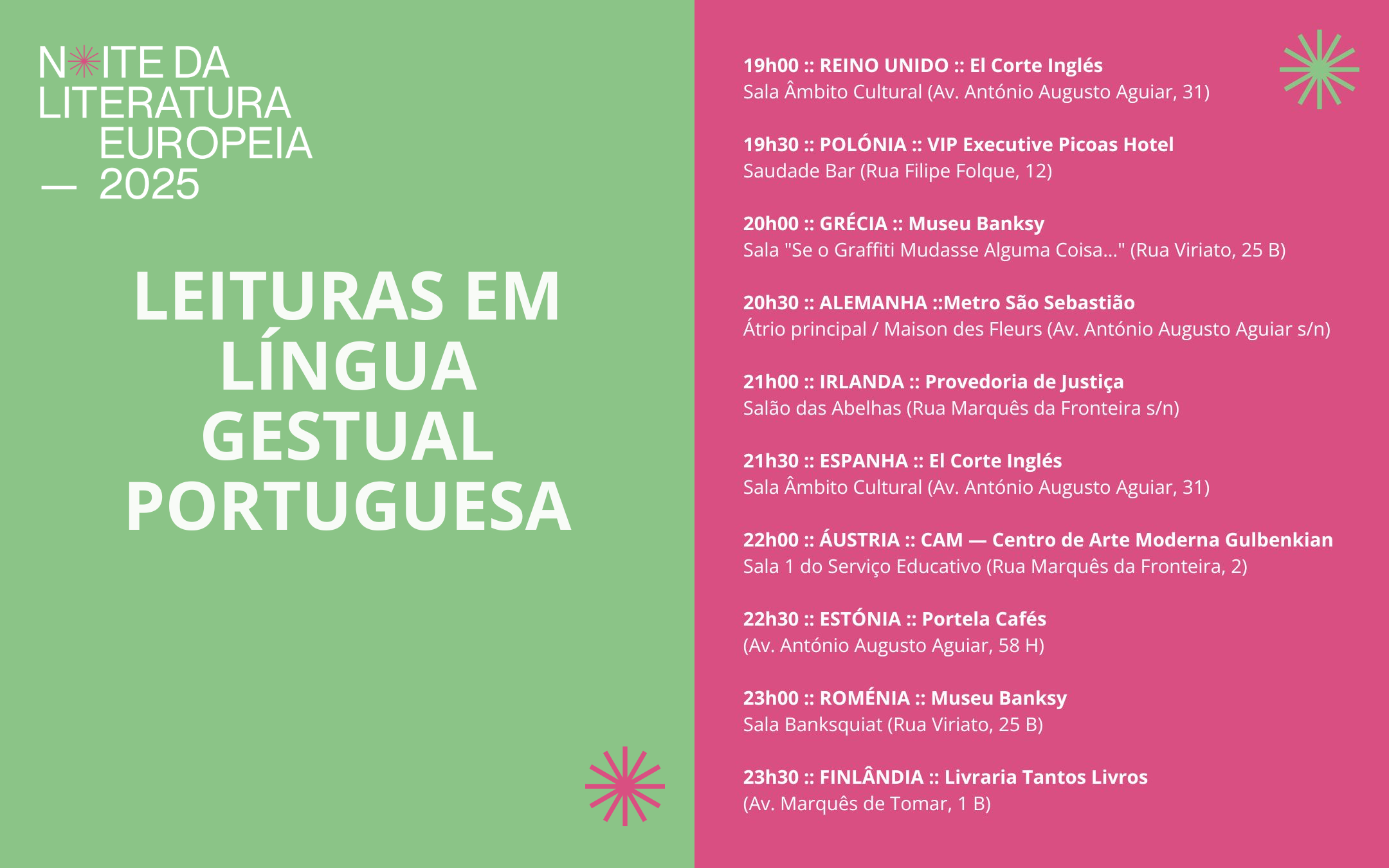 Brochura da Noite da Literatura Europeia com o programa completo e todas as informações sobre obras, autores, autoras, atores, atrizes e locais pode ser consultada no link abaixo.