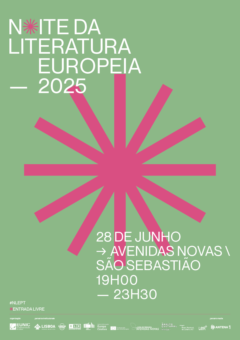 No próximo dia 28 de junho, sábado, das 19h00 às 23h30, em diversos espaços de São Sebastião na Junta de Freguesia das Avenidas Novas, em Lisboa, irá decorrer a Noite da Literatura Europeia. O público do evento terá a oportunidade de conhecer as literaturas de 15 países europeus: Alemanha Áustria, Bélgica, Espanha, Estónia, Finlândia, França, Grécia, Irlanda, Italia, Luxemburgo, Polónia, Portugal, Reino Unido e Roménia.