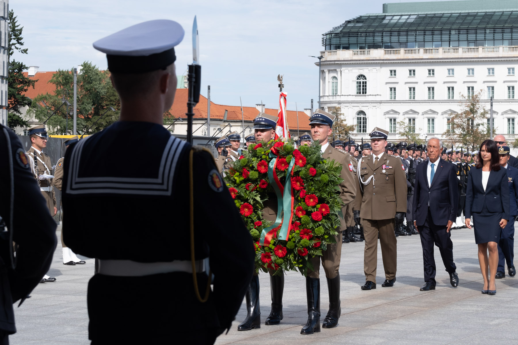 Z Belwederu prezydent Marcelo Rebelo de Sousa udał się na plac Marszałka Józefa Piłsudskiego, gdzie złożył kwiaty na Grobie Nieznanego Żołnierza.