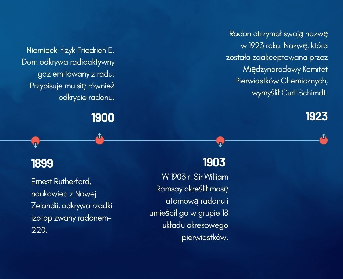 Kalendarium najważniejszych wydarzeń związanych z historią radonu.