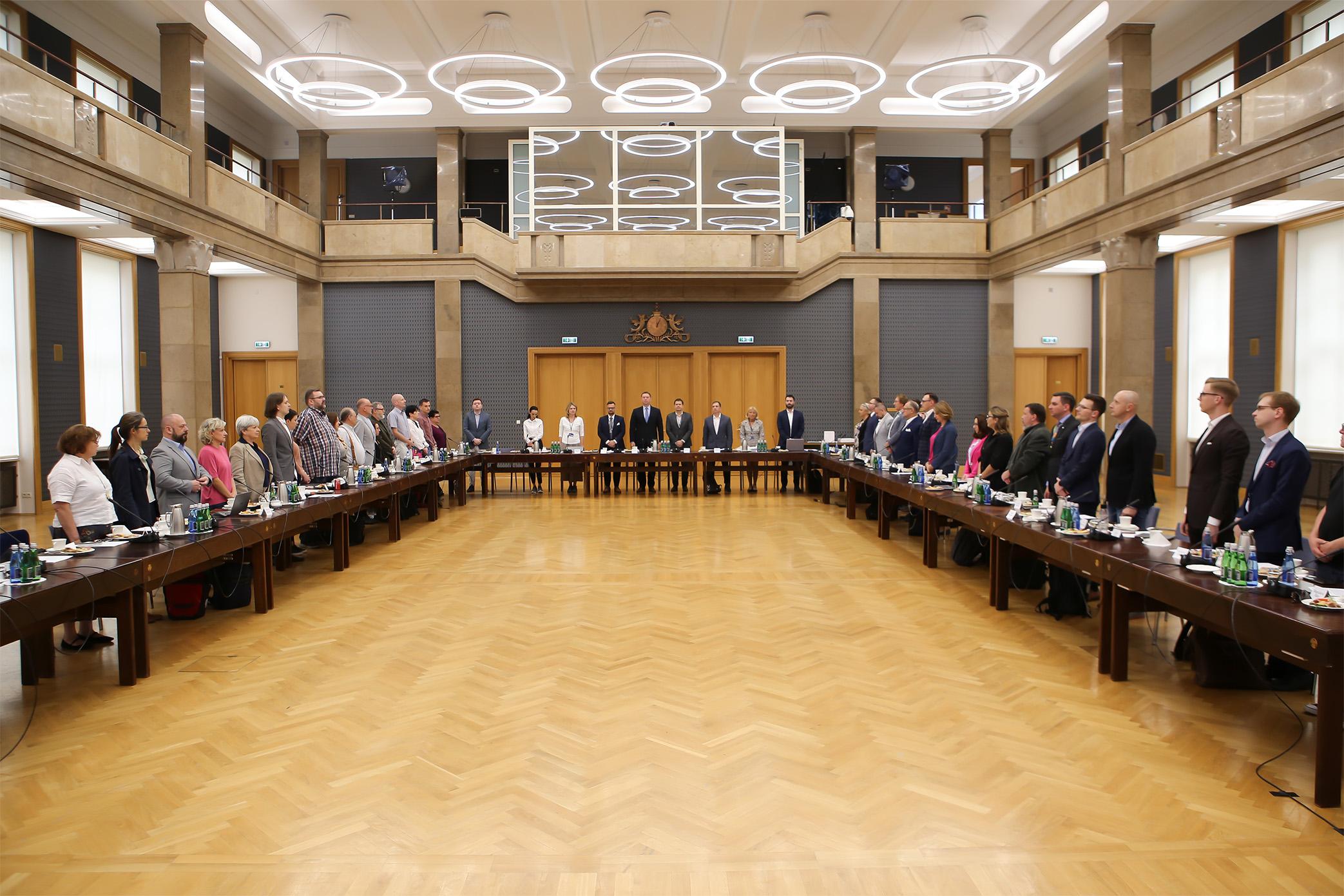 Prowadzący spotkanie Piotr Stec, pełniący w KPRM funkcję doradcy pani minister i wiceministra Marka Krawczyka, rozpoczął spotkanie minutą ciszy dla uczczenia żołnierza, który w ostatnich dniach zginął tragicznie na granicy polsko – białoruskiej.