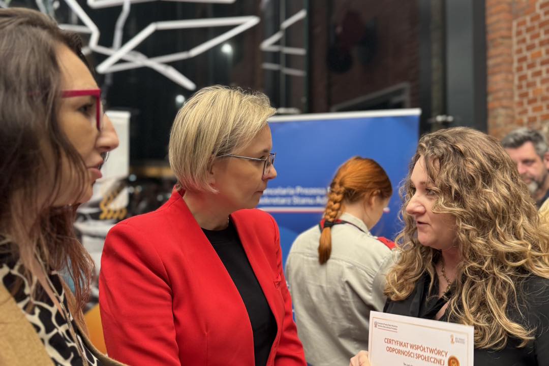 Na zakończenie spotkania Pani Minister wręczyła certyfikaty Twórców Odporności Społecznej, czyli specjalne wyróżnienia dla osób i organizacji, które z zaangażowaniem budują odporne i silne społeczności lokalne.