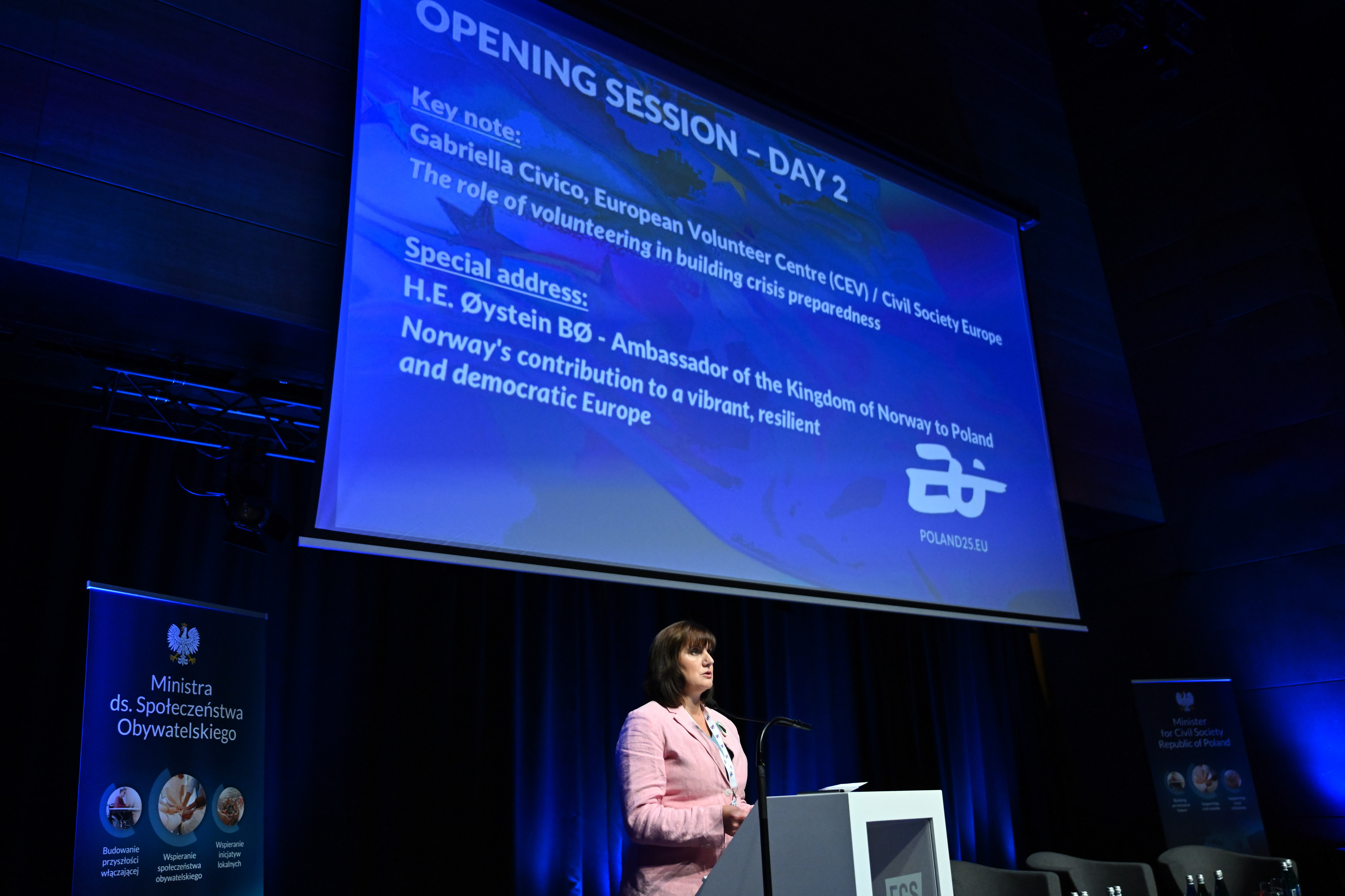 Osobny panel poświęcono refleksjom na temat osiągnięć Funduszu Społeczeństwa Obywatelskiego w Polsce w obszarze wzmocnienia odporności demokratycznej i gotowości na kryzysy, na podstawie dotychczasowych doświadczeń i bieżących wyzwań. Przedstawiciele Ambasady Królestwa Norwegii w Polsce zaprezentowali priorytety nowego Funduszu Społeczeństwa Obywatelskiego w ramach funduszy norweskich i EOG 2021-2028.