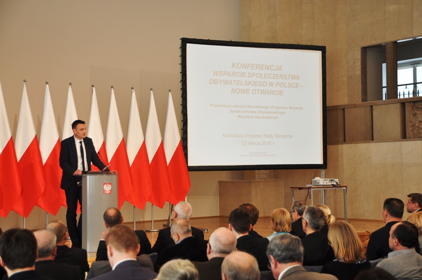 W dniu 23 marca Kancelaria Prezesa Rady Ministrów gościła przedstawicieli trzeciego sektora na konferencji „WSPARCIE SPOŁECZEŃSTWA OBYWATELSKIEGO W POLSCE – NOWE OTWARCIE”. Gospodarzem konferencji był Wojciech Kaczmarczyk Pełnomocnik Rządu do Spraw Społeczeństwa Obywatelskiego. Konferencję otworzyła Pani Beata Szydło Prezes Rady Ministrów.
