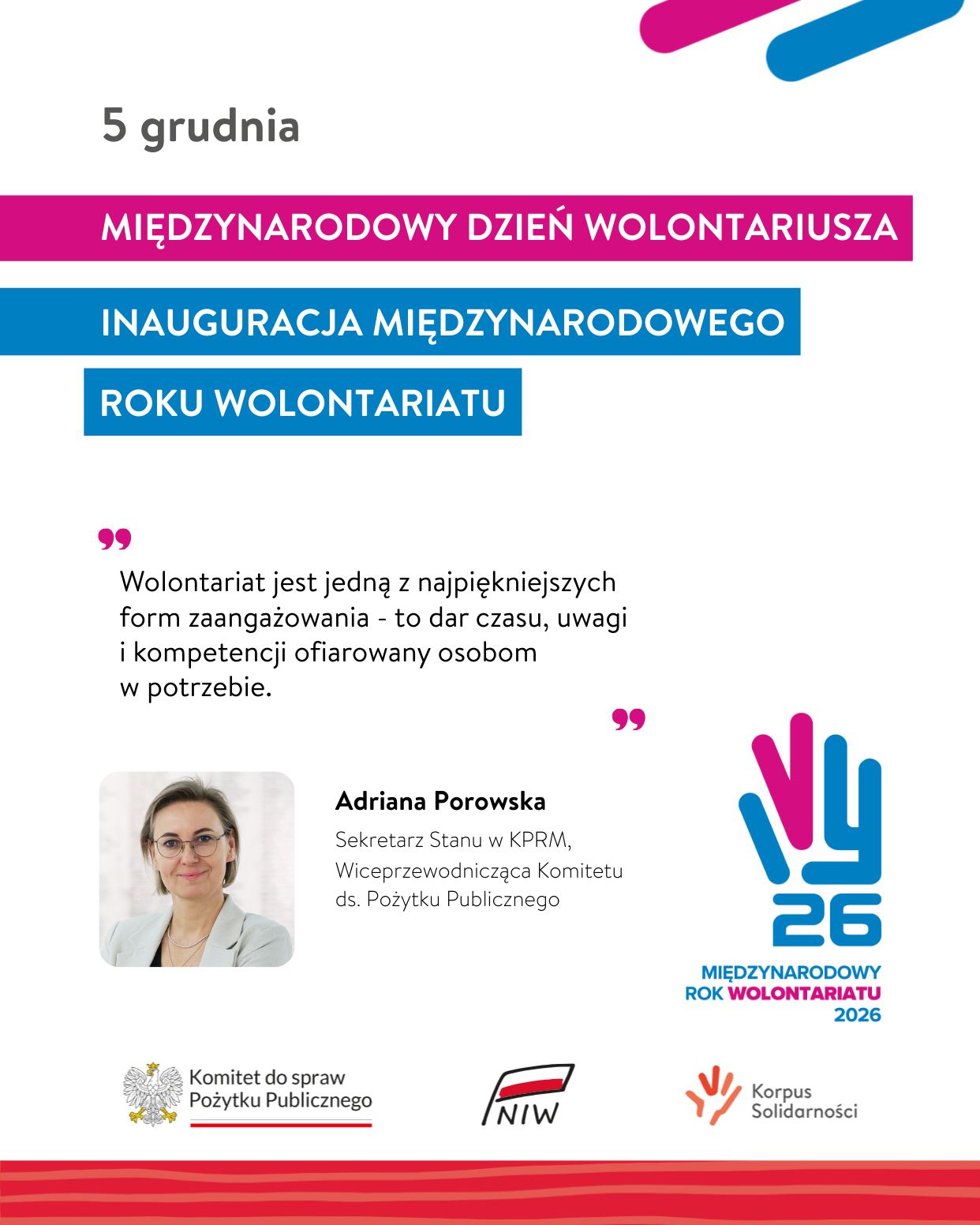 - rok 2026 został poświęcony wolontariatowi jako kluczowej sile napędowej zrównoważonego rozwoju;