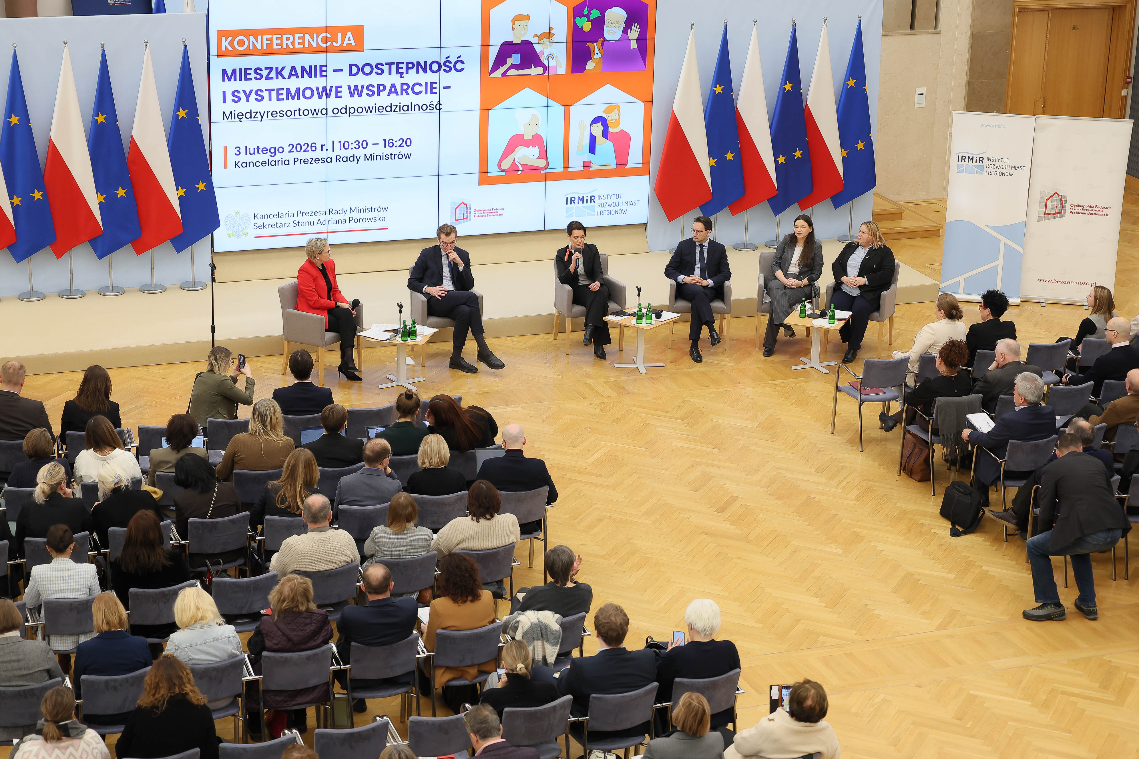 3 lutego 2026 r. w Kancelarii Prezesa Rady Ministrów z inicjatywy Sekretarz Stanu Adriany Porowskiej oraz przy współpracy z Ogólnopolską Federacją na rzecz Rozwiązywania Problemu Bezdomności oraz Instytutem Rozwoju Miast i Regionów, odbyła się konferencja poświęcona wyzwaniom i kierunkom rozwoju polityki mieszkaniowej w Polsce.