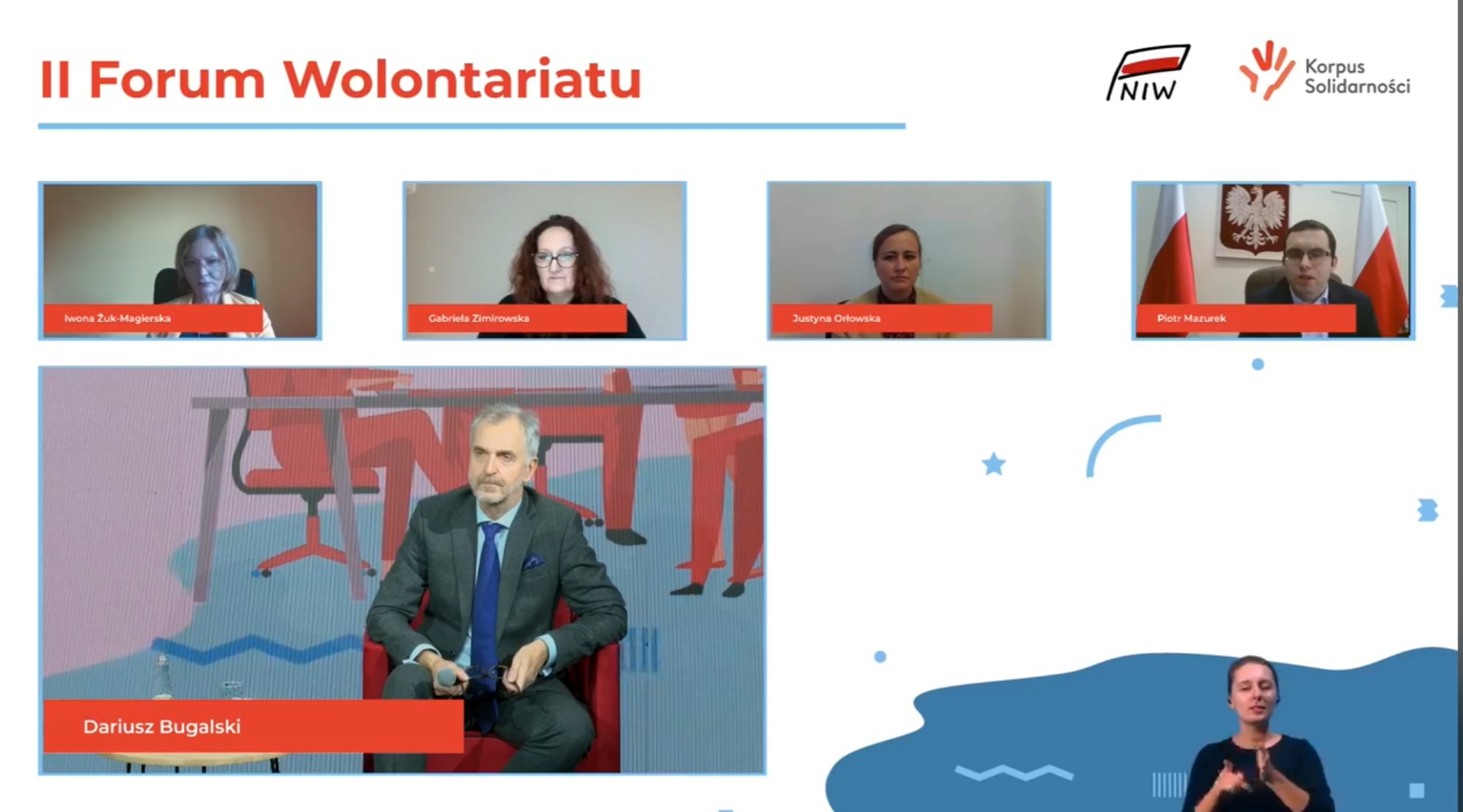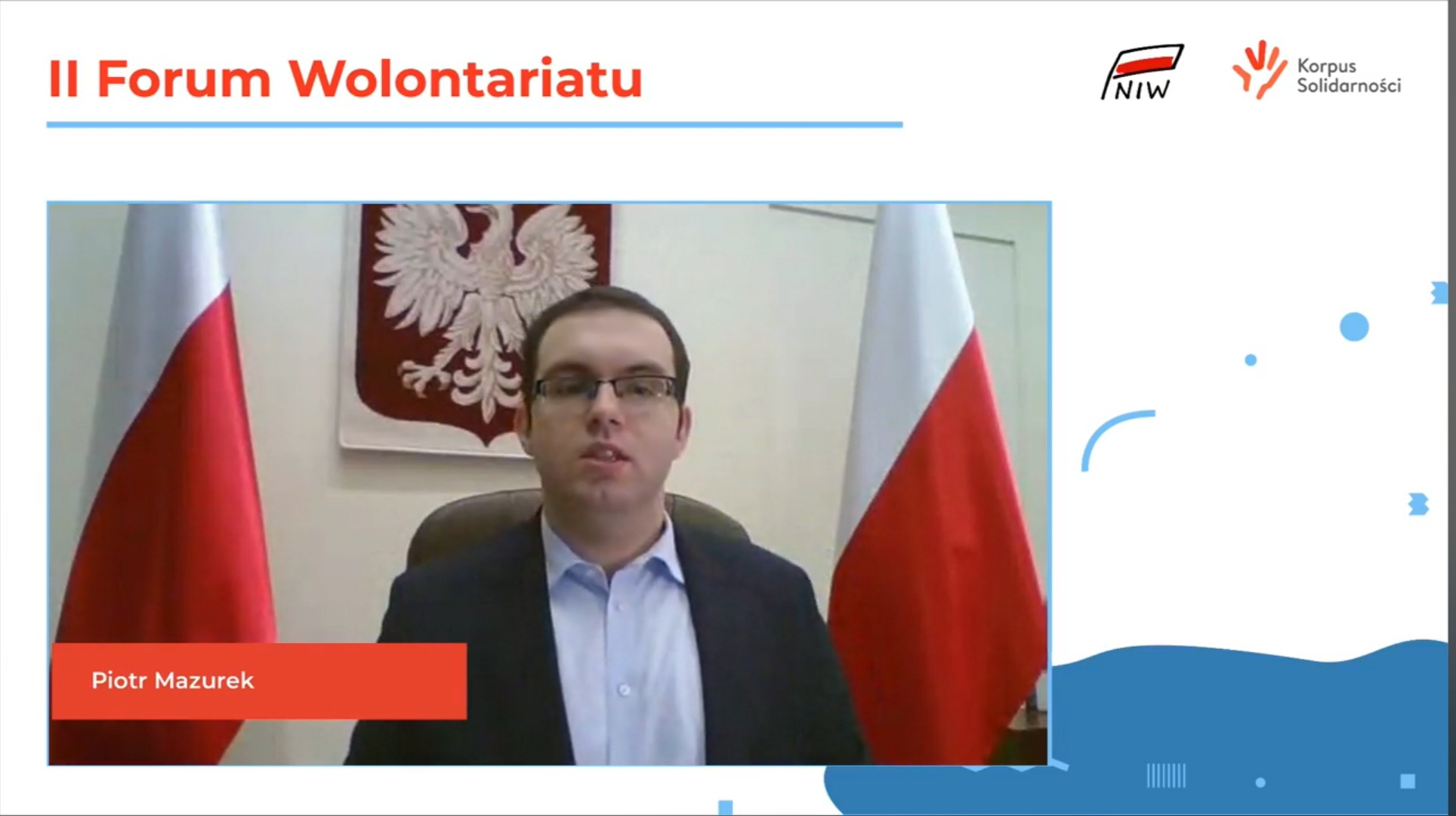 Minister Piotr Mazurek wziął udział także w debacie „Wolontariat w czasie COVID-19 – doświadczenia Partnerów Korpusu Solidarności”, w której dyskutował z przedstawicielkami organizacji pozarządowych biorących udział w Korpusie Solidarności – Justyną Orłowską, Gabrielą Zimirowską, Iwoną Żuk-Magierską. Podkreślał wagę Solidarnościowego Korpusu Wsparcia Seniorów, dzięki któremu osoby szczególnie narażone mogą pozostać w domu, a wolontariusze pomogą im m.in. w zakupach. Zauważył także, jak duże zmiany dla trzeciego sektora powstały w wyniku pandemii COVID-19 oraz zaznaczał jak polski rząd reaguje na potrzeby organizacji pozarządowych.