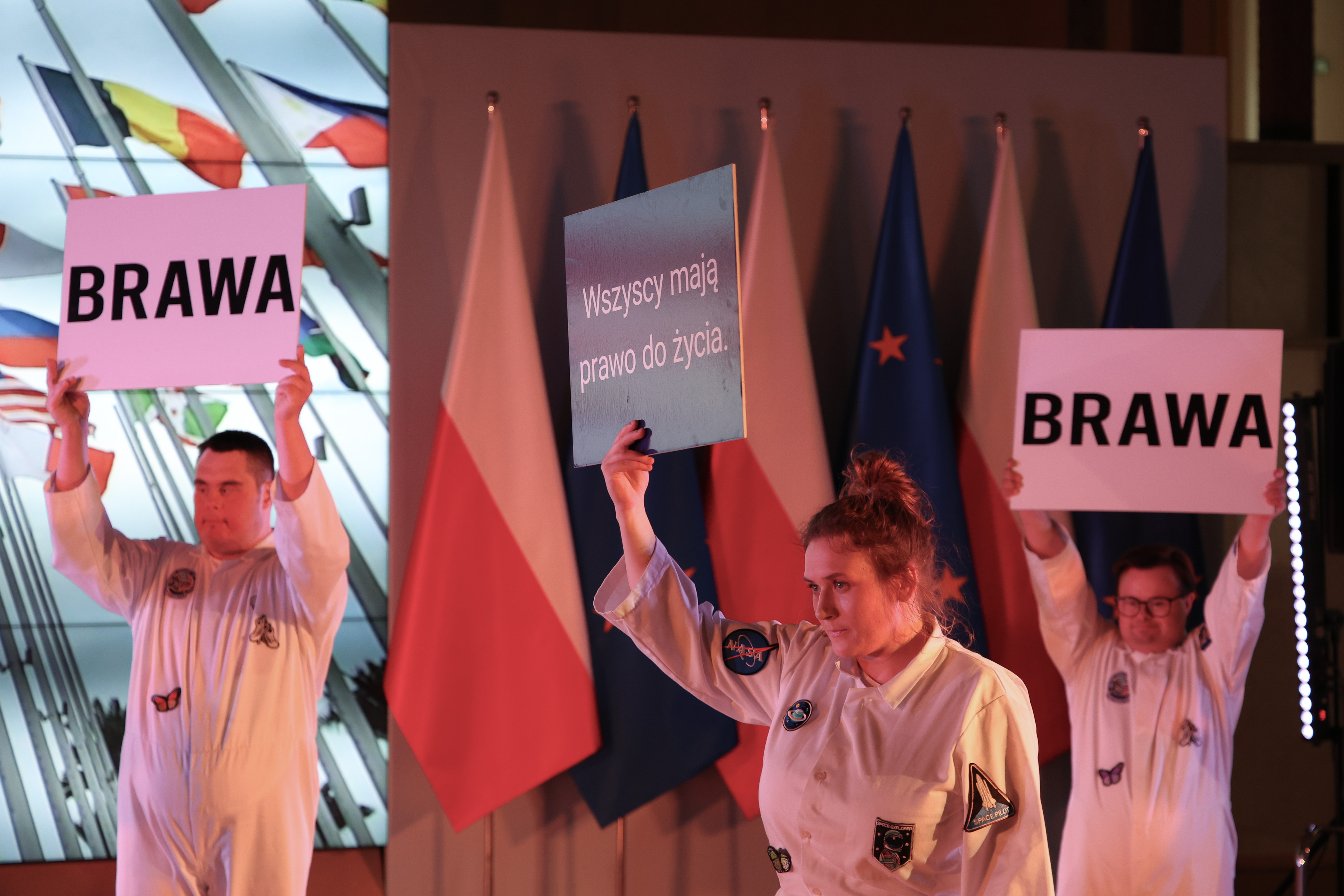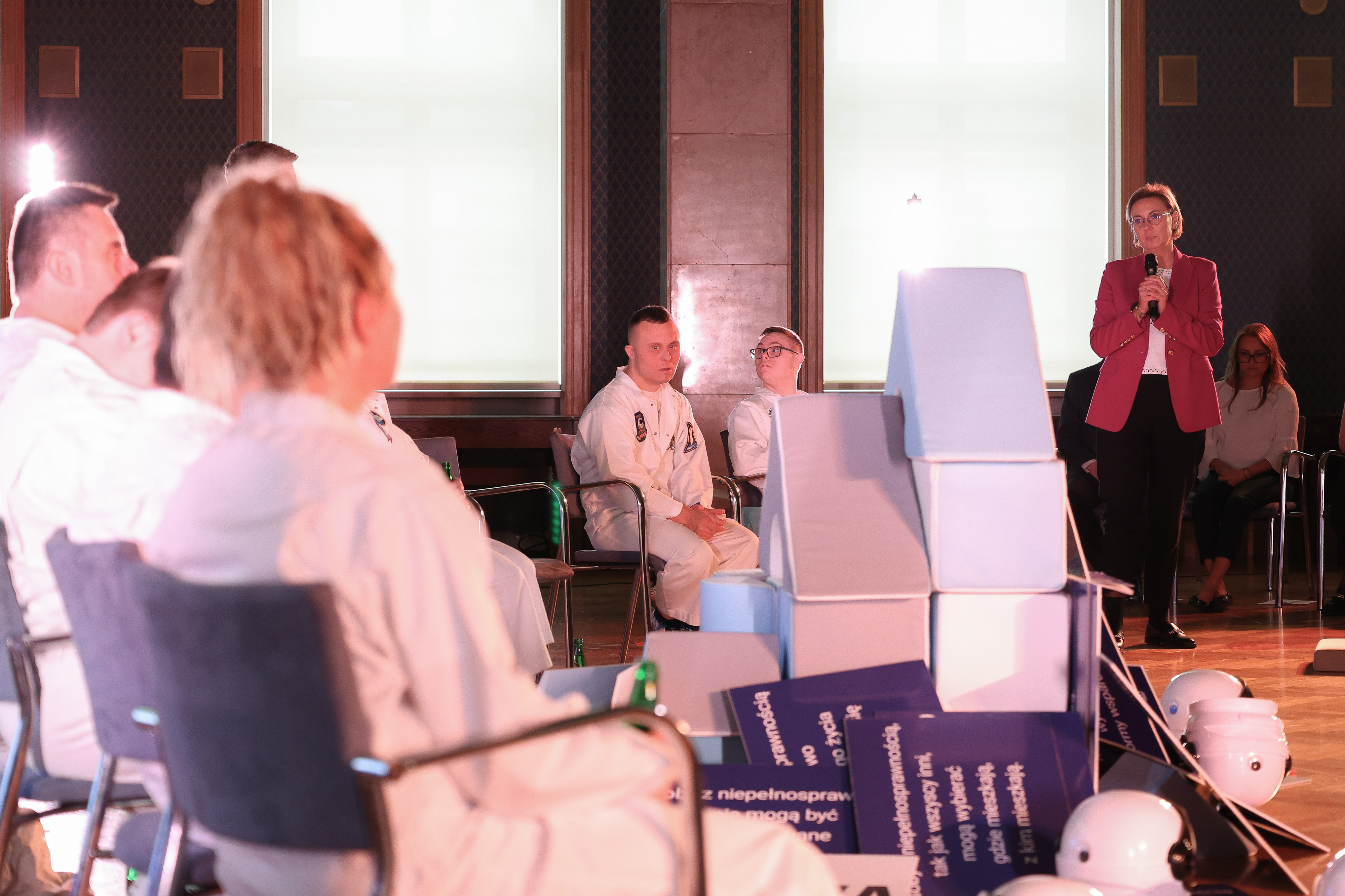 - „Konwencja” to piękne i mądre, a przy tym aktualne przedstawienie. Sztuka niesie uniwersalne przesłanie i budzi refleksje nad tym, jak ważne jest przestrzeganie praw wszystkich osób - niezależnie od ich sytuacji życiowej, zdrowotnej czy społecznej. To przypomnienie, że godność człowieka i równość wobec prawa nie mogą być warunkowane żadnymi okolicznościami. To dla nas ogromny zaszczyt i prawdziwa przyjemność, że ten wyjątkowy spektakl udało się zorganizować w siedzibie Kancelarii Prezesa Rady Ministrów – powiedziała Ministra ds. Społeczeństwa Obywatelskiego Adriana Porowska.