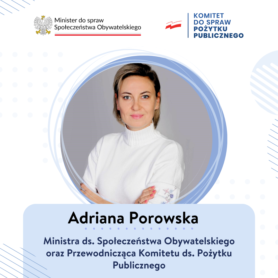 16 października 2024 r. pani Adriana Porowska objęła stanowisko Ministry do spraw Społeczeństwa Obywatelskiego, zastępując panią Agnieszkę Buczyńską, która sprawowała tę funkcję od 13 grudnia 2023 r. Pani Agnieszka Buczyńska ustąpiła ze stanowiska z przyczyn osobistych.