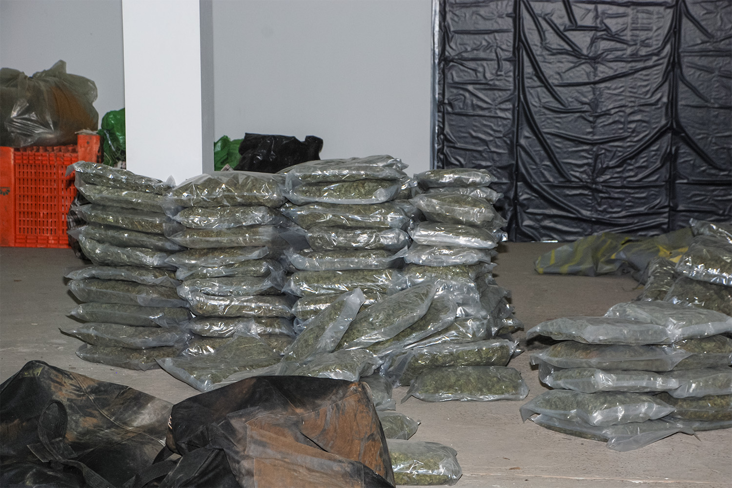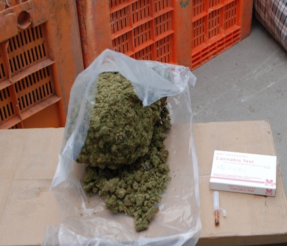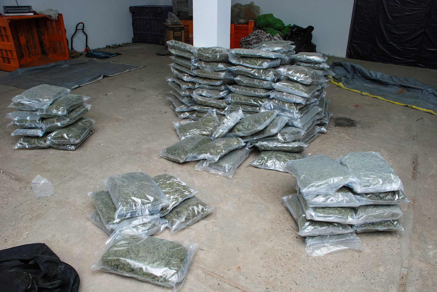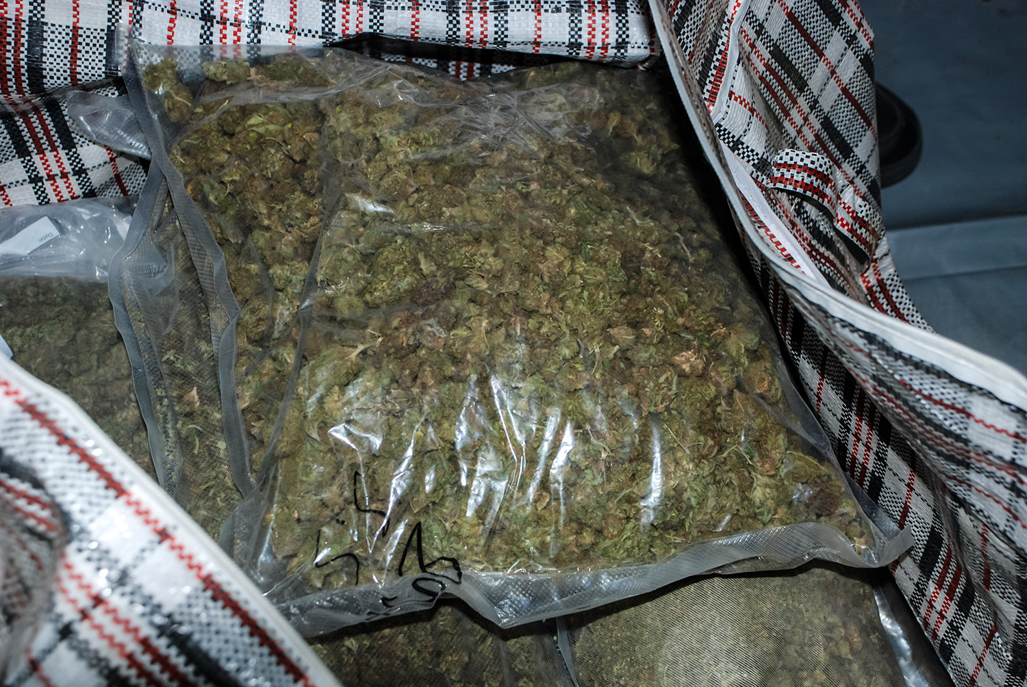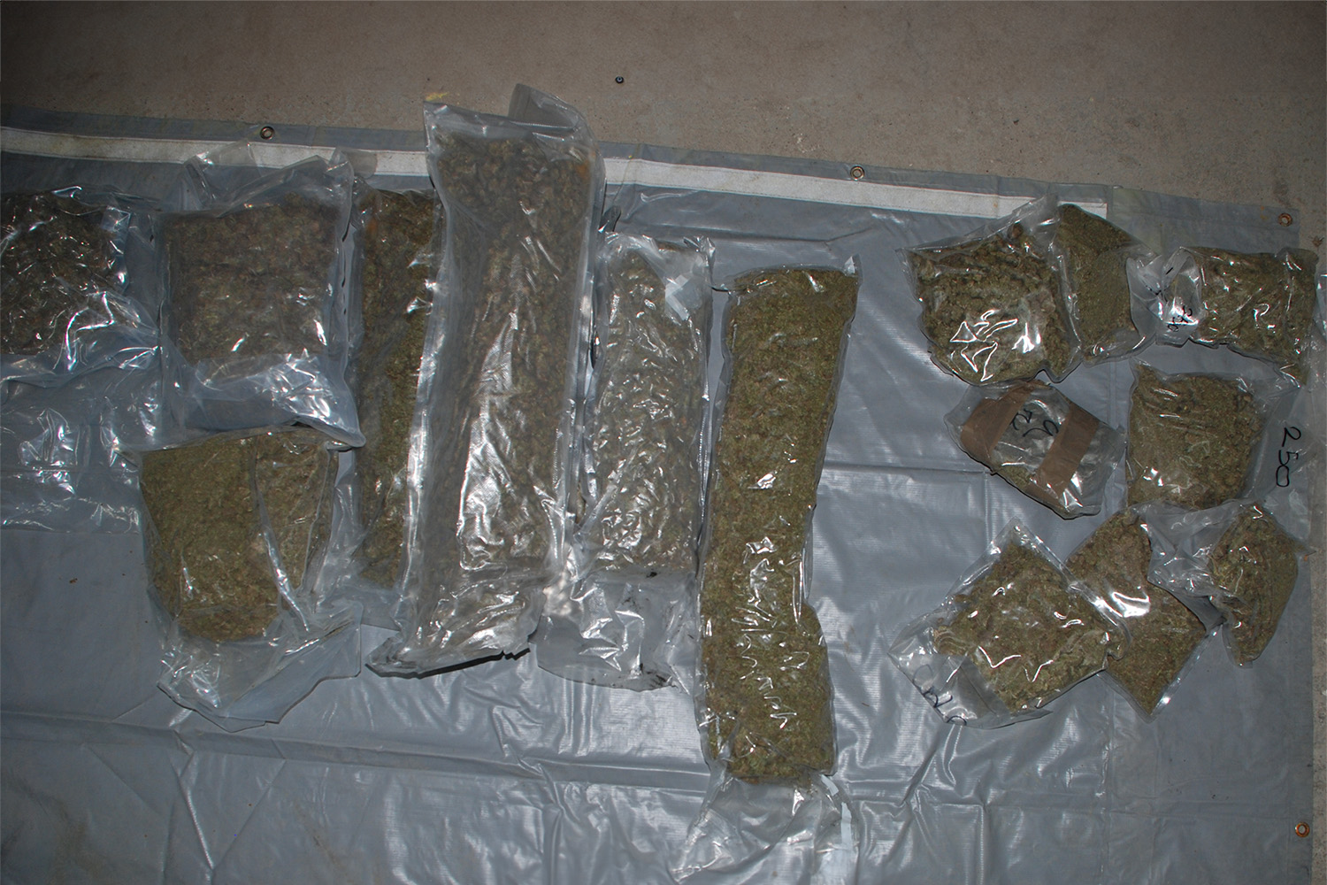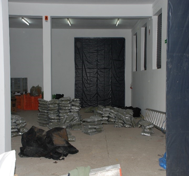 Dokładne sprawdzenie wnętrza pylonów doprowadziło do ujawnienia worka z zawartością trzech pakunków marihuany. Podobne co do wyglądu i masy worki z zawartością marihuany ujawniono również w pomieszczeniach gospodarczych przeszukiwanej nieruchomości. Łącznie zabezpieczono wówczas 320,29 kg marihuany, zgrzewarkę do pakowania próżniowego, różnej wielkości worki foliowe, telefony komórkowe, karty SIM, elektroniczne zagłuszarki sygnału fal radiowych, 18.000,00 zł w gotówce i wiele innych przedmiotów świadczących o tym, że pomieszczenia te były wykorzystywane jako magazyn i miejsce przepakowywania marihuany do mniejszych opakowań.