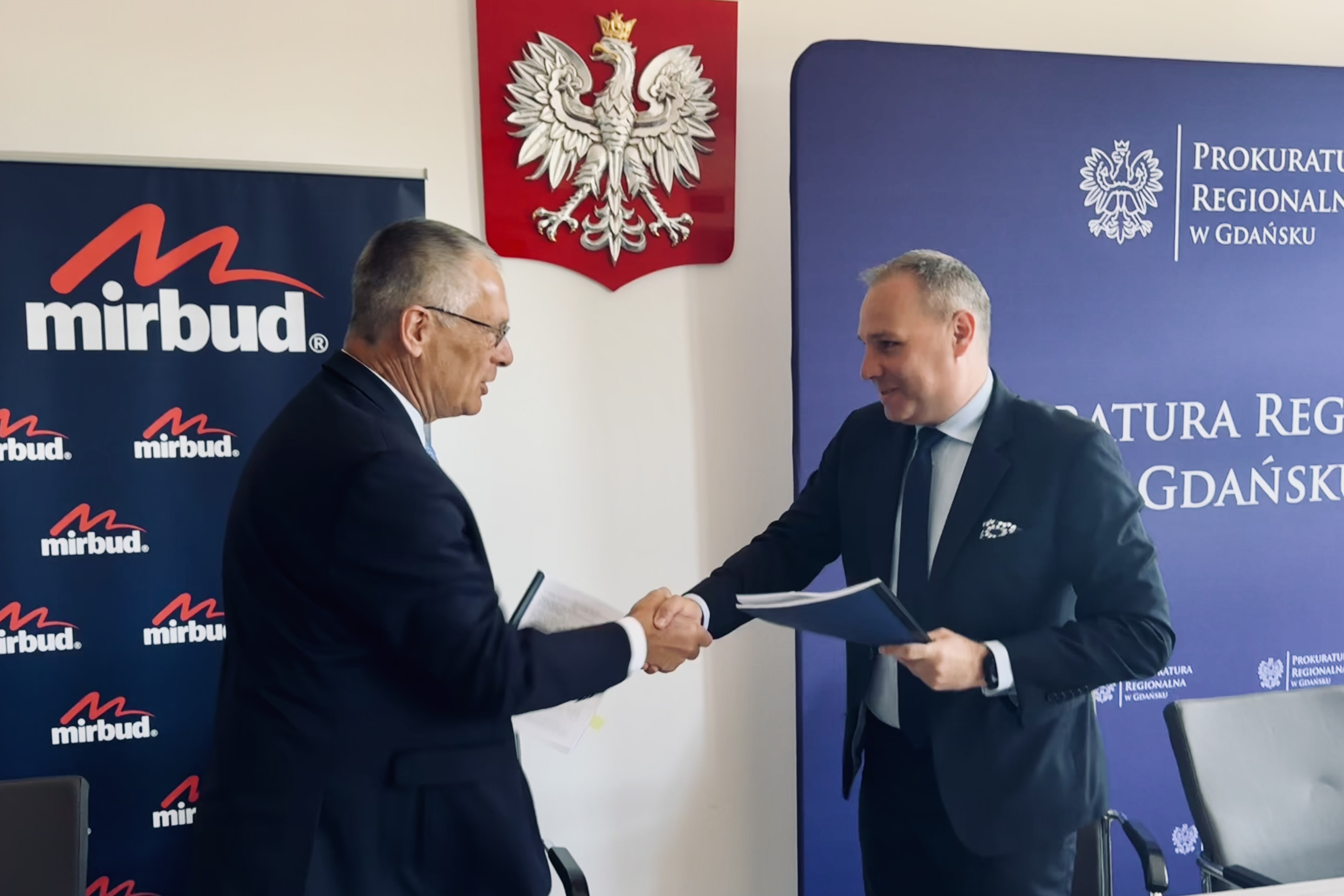 Prokurator Regionalny w Gdańsku 02 lipca 2025 r. podpisał z MIRBUD S.A. w Skierniewicach, umowę o wybudowanie nowej siedziby Prokuratury Regionalnej w Gdańsku. MIRBUD S.A. ma 33 miesiące na kompleksową realizację przedmiotowej inwestycji, za cenę 119.222.703,17 zł brutto.