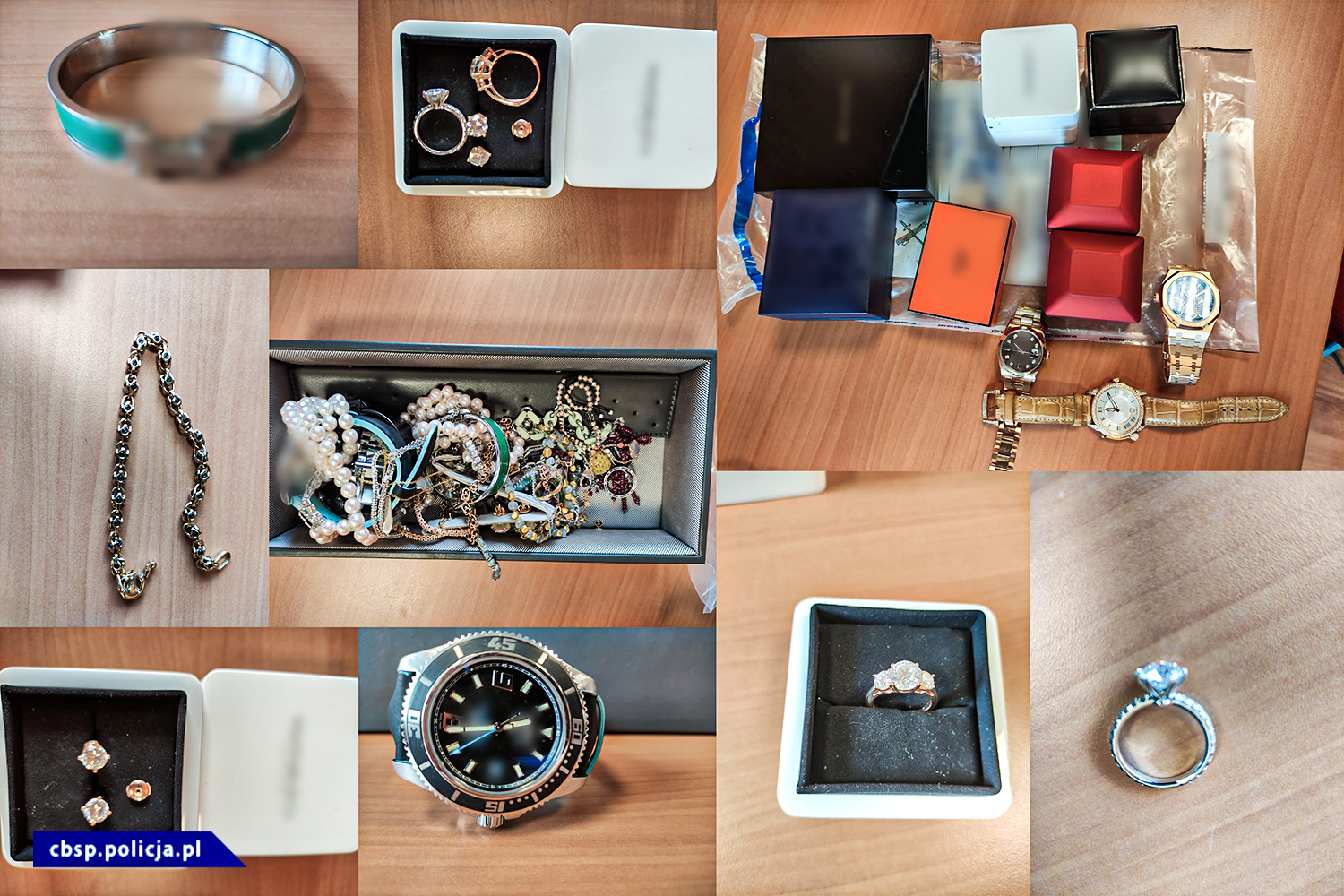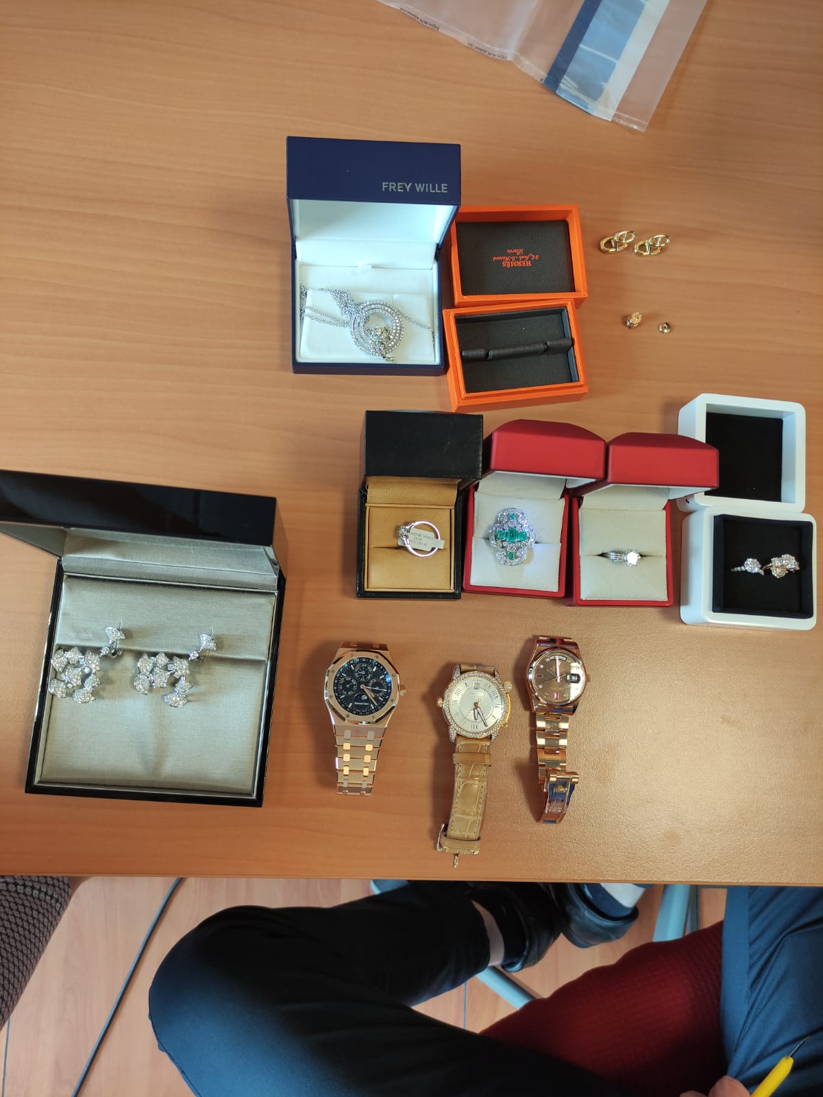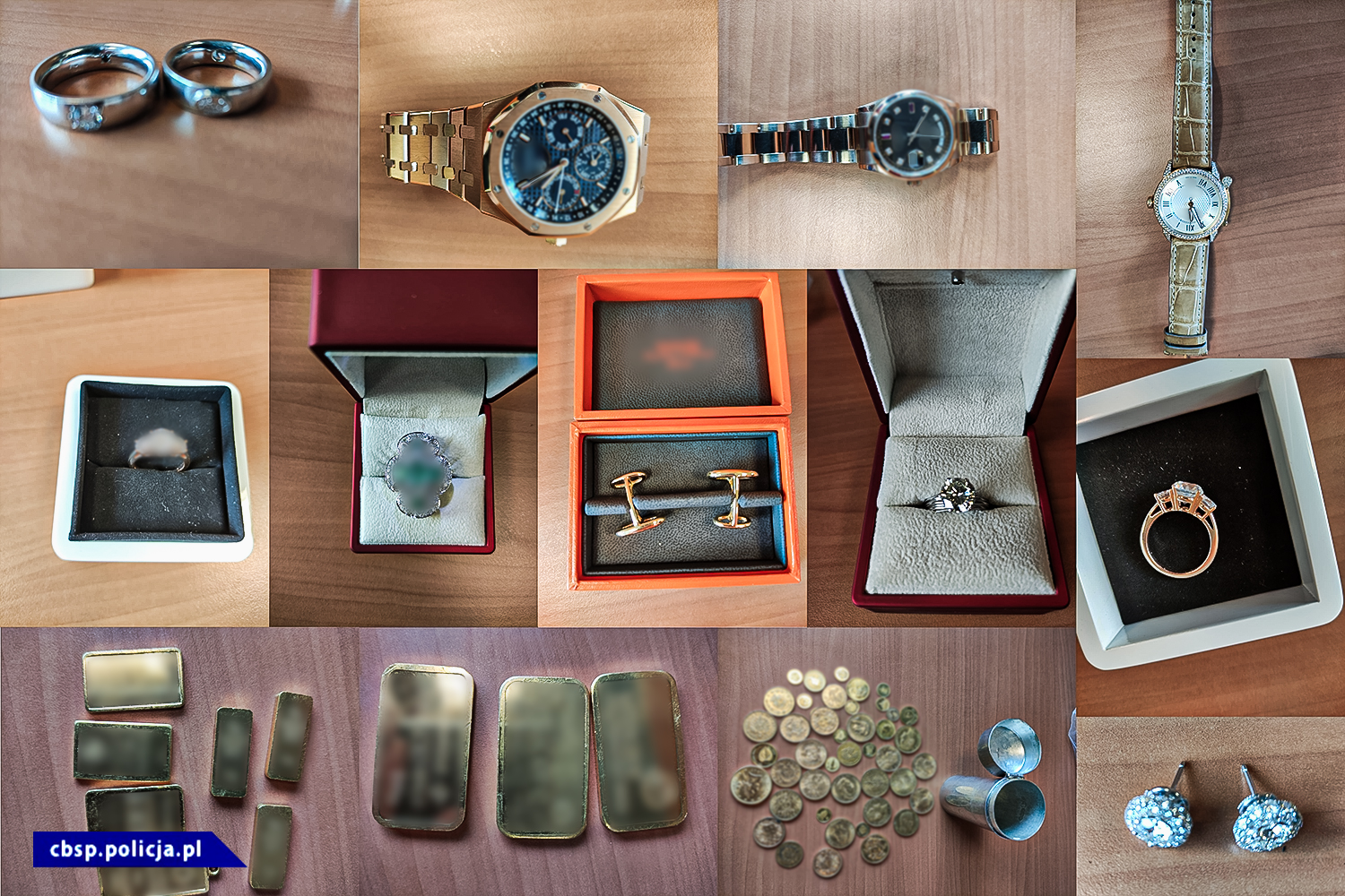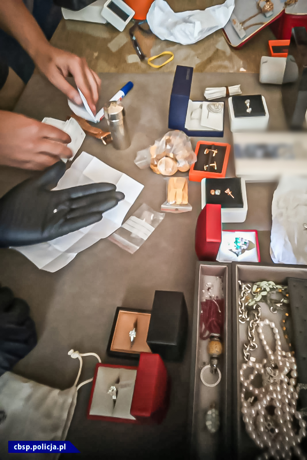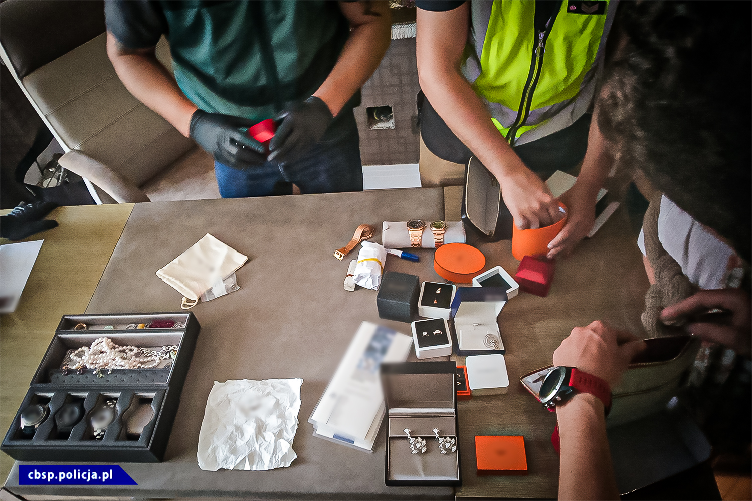 Zabezpieczono mienie znacznej wartości w postaci kilkudziesięciu sztuk diamentów wysokiej klasy, kilkunastu sztabek złota o wadze od 10 do 100 gramów, licznej biżuterii z metali szlachetnych topowych projektantów w tym Chanel, Bulgari, Hermes, 8 luksusowych zegarków marki Rolex, Breitling, Hublot, prawie 150 monet okolicznościowych ze złota oraz innych przedmiotów w tym sprzętu komputerowego i ponad 100 telefonów komórkowych. Szacunkowa wartość mienia to kilka milionów złotych.