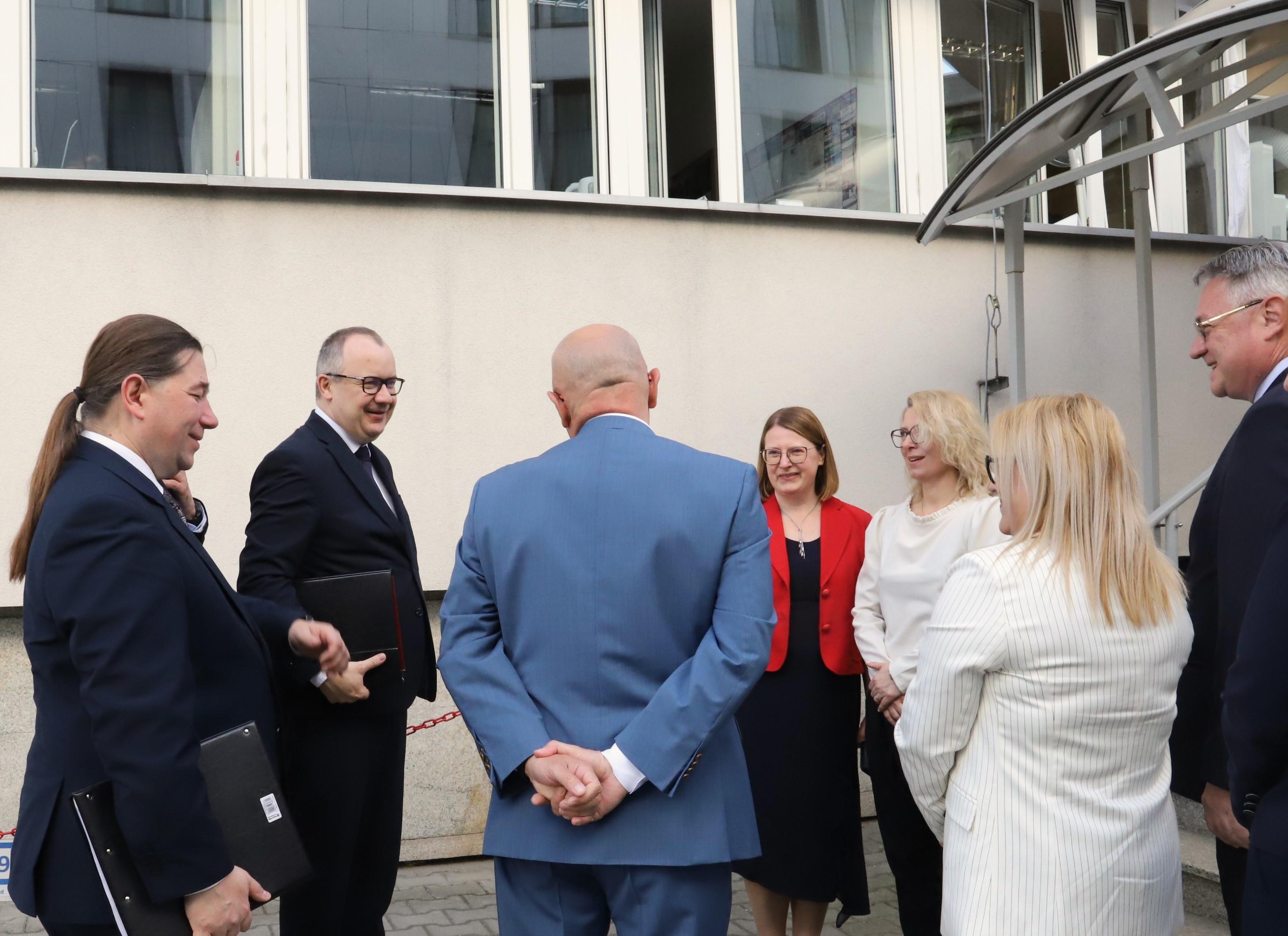 Pan Adam Bodnar Minister Sprawiedliwości - Prokurator Generalny w dniu 10 maja 2024 roku w Krakowie spotkał się z prokuratorami, asesorami, asystentami prokuratora, urzędnikami oraz innymi pracownikami, zatrudnionych w powszechnych jednostkach organizacyjnych prokuratury z obszaru właściwości Prokuratury Regionalnej w Krakowie. W wizycie wziął także udział Pan Dariusz Korneluk- Prokurator Krajowy.
