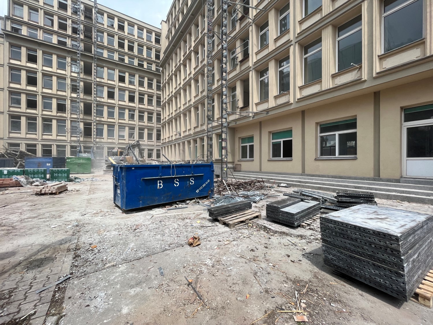 po Archiwum Narodowym, rozebrano stary budynek i w jego miejsce zlokalizowano nowe parkingi wraz z drogami komunikacyjnymi, nowy agregat prądotwórczy zapewniający energię elektryczną dla całego budynku przy ulicy Lubicz 25 w razie przerw w dostawie prądu, - wykonano nowe odwodnienie terenu zewnętrznego,