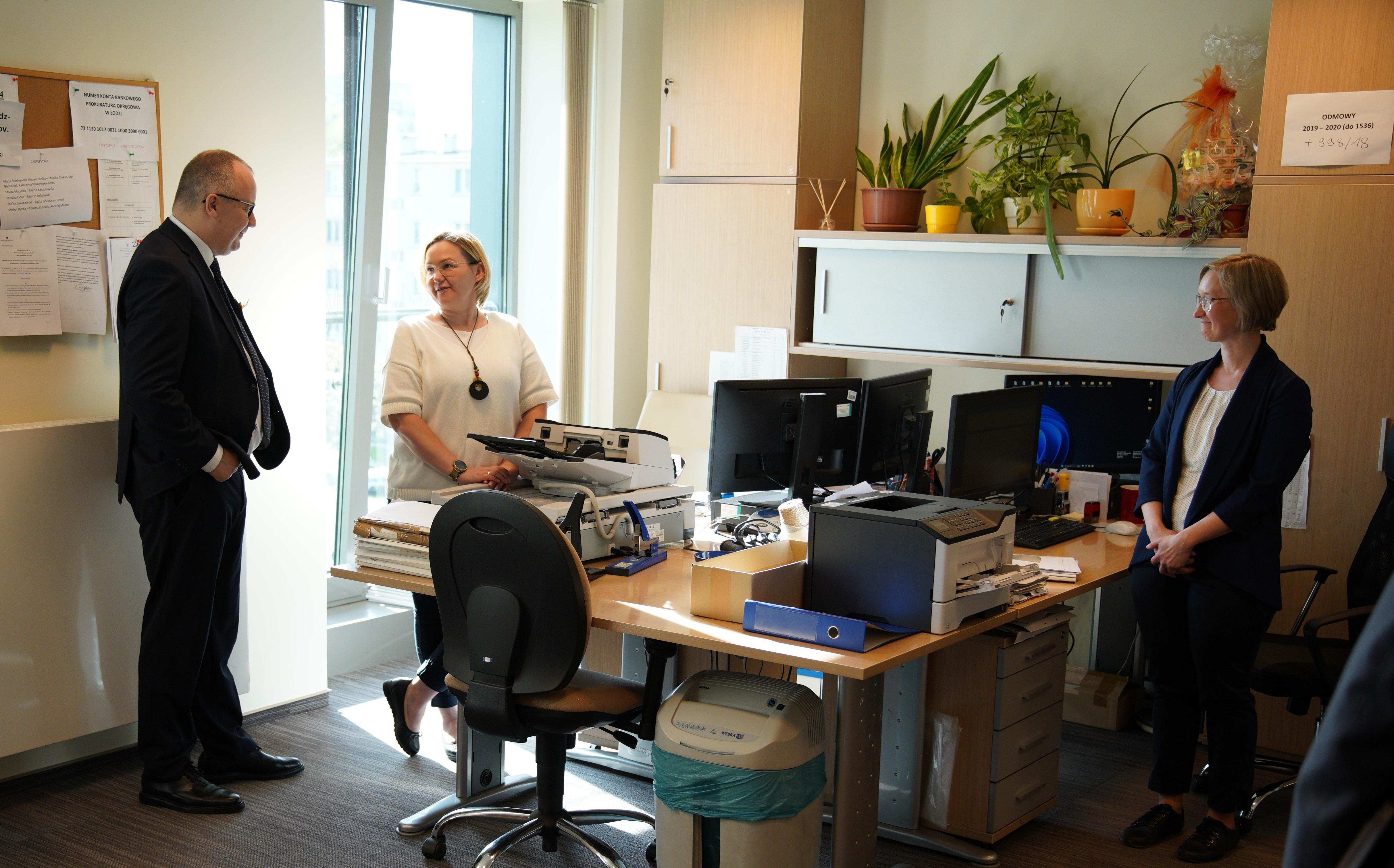 Dzisiaj kolejny dzień spotkań Prokuratora Generalnego ze środowiskiem prokuratorskim. Tym razem Adam Bodnar wraz z Prokuratorem Krajowym Dariuszem Kornelukiem i prok. Katarzyną Kwiatkowską Dyrektorem Biura Postępowania Przygotowawczego Prokuratury Krajowej odwiedzili region łódzki. W planie spotkania uwzględniono wizytę w Prokuraturze Rejonowej Łódź – Widzew i Prokuraturze Rejonowej Łódź – Polesie, a także spotkanie z kierownictwem Prokuratury Regionalnej w Łodzi oraz Prokuratorami Okręgowymi z jednostek podległych.
