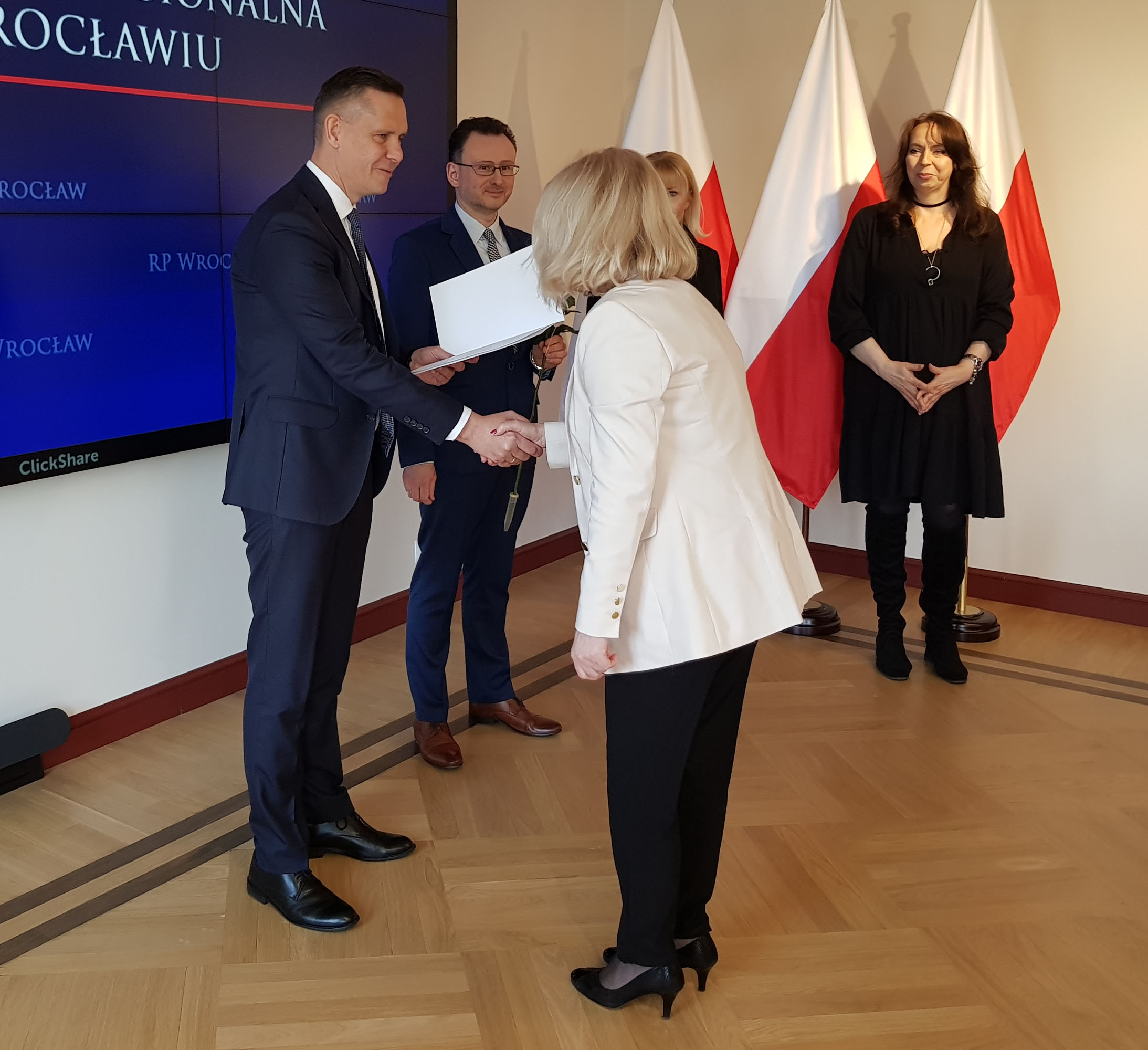Wręczenia aktów powołania do pełnienia funkcji dokonał Prokurator Regionalny we Wrocławiu Bartosz Pęcherzewski. W uroczystości udział wzięli Zastępcy Prokuratora Regionalnego: prokurator Dariusz Brodzisz i prokurator Agnieszka Korczak.