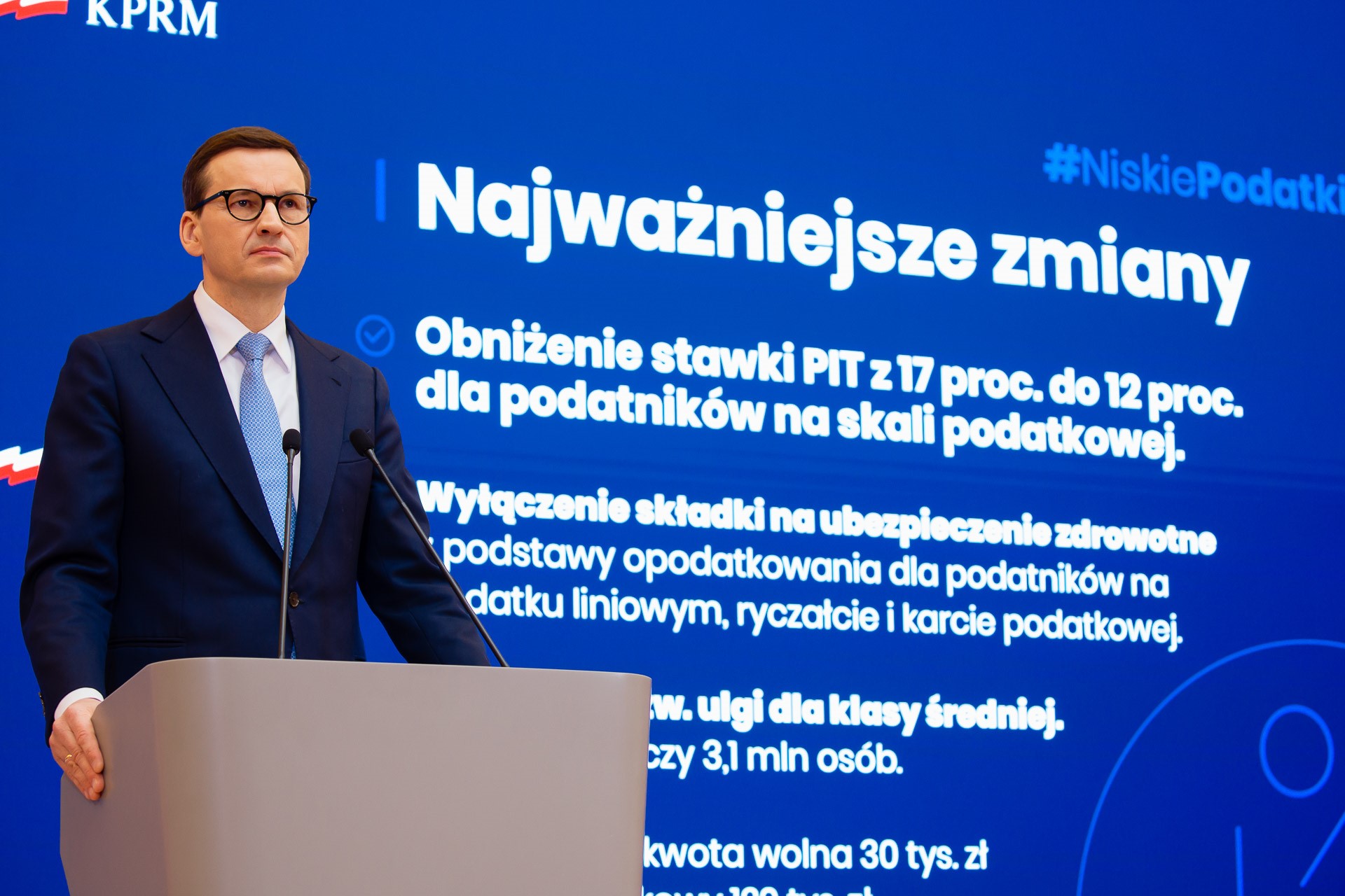 Kontynuujemy korzystne zmiany i wprowadzamy w życie kolejne rozwiązania z tzw. Tarczy Antyputinowskiej. Naszym głównym celem jest ochrona polskich rodzin przed negatywnymi skutkami gospodarczymi związanymi z agresją Rosji na Ukrainę oraz inflacją, z którą zmaga się cały świat. Będzie to możliwe dzięki zmianom podatkowym. To m.in. obniżenie PIT z 17 do 12 proc. dla osób na skali podatkowej czy wyłączenie składki na ubezpieczenie zdrowotne z podstawy opodatkowania dla osób na podatku liniowym, ryczałcie i karcie podatkowej. Nowe rozwiązania podatkowe to kontynuacja rozpoczętych już korzystnych zmian – podwyższenia kwoty wolnej do 30 tys. i progu podatkowego do 120 tys. zł.