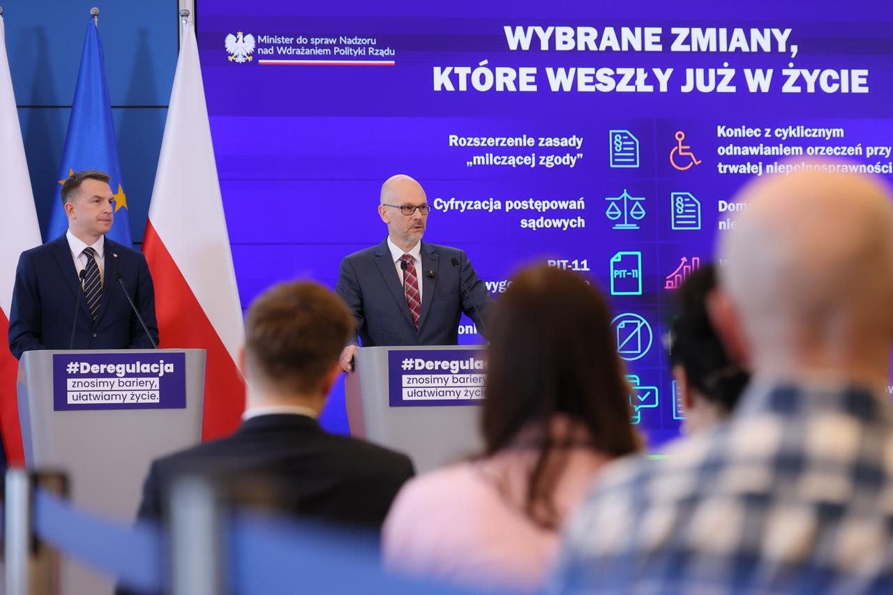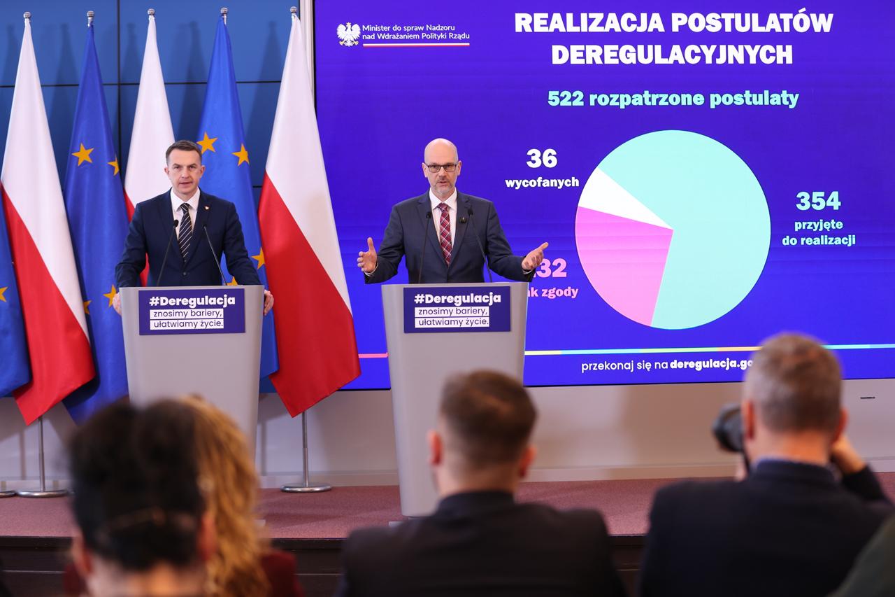 Rok po rozpoczęciu procesu deregulacji rząd podsumował efekty wspólnych działań ze stroną społeczną. Z 354 postulatów przyjętych przez Radę Ministrów, 126 już weszło w życie, a prace nad kolejnymi trwają. „Deregulacja to coś, do czego się zobowiązaliśmy. Coś, co przeprowadziliśmy już w pewnym zakresie i coś, co traktujemy jeszcze raz jako zobowiązanie” - powiedział podczas prezentacji pierwszego raportu poświęconego procesowi upraszczania przepisów Minister ds. Nadzoru nad Wdrażaniem Polityki Rządu Maciej Berek. To dopiero początek trwałej zmiany sposobu tworzenia prawa w Polsce. Celem jest państwo o prostych, bardziej przewidywalnych i przyjaznych przepisach.