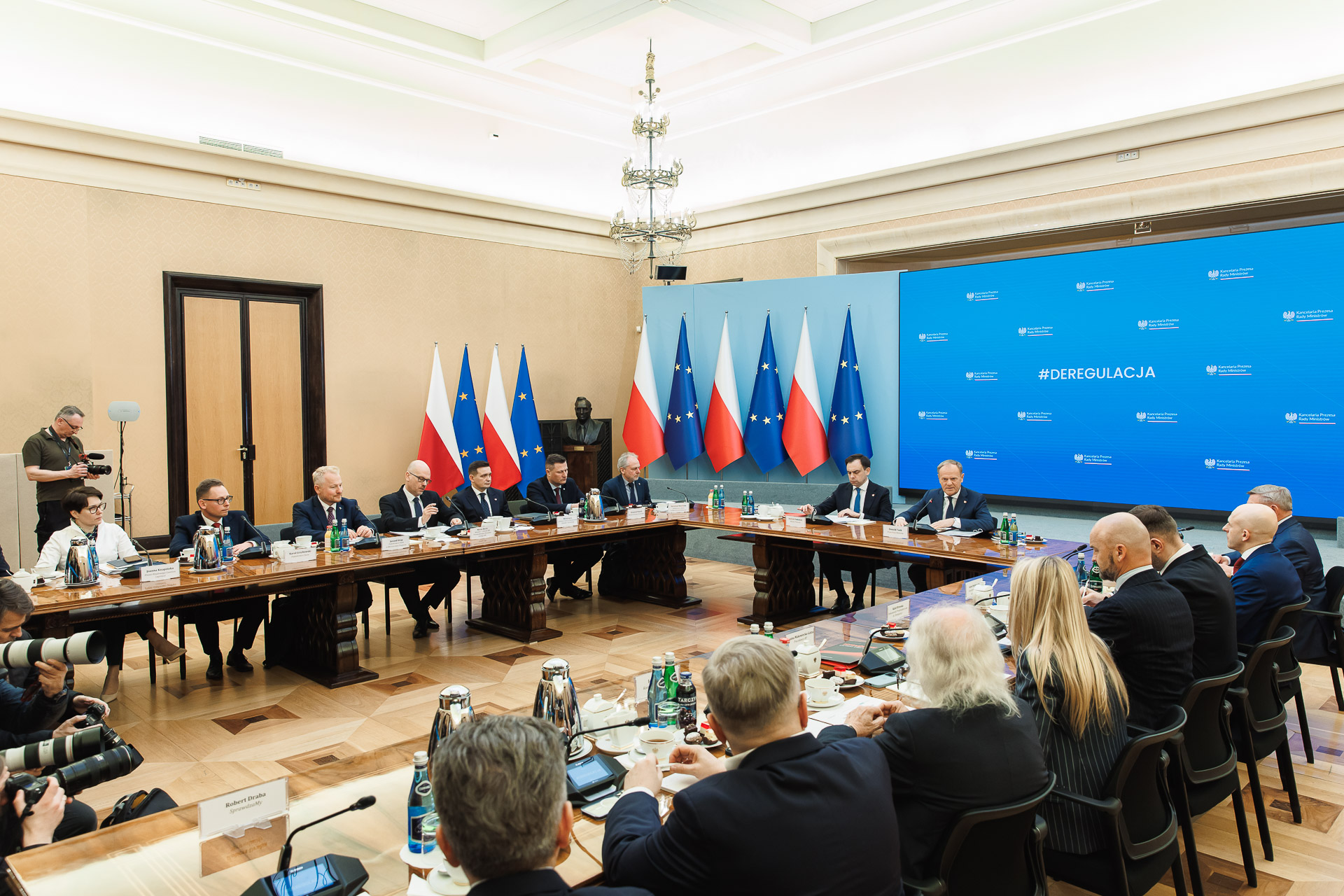 Proces deregulacji nabiera tempa. Premier Donald Tusk spotkał się w KPRM z przedstawicielami strony społecznej oraz Rządowym Zespołem ds. Deregulacji, aby omówić postępy prac i dalsze uproszczenia przepisów. Szef rządu podkreślił, że 90 proc. dotychczas przeanalizowanych przez rząd rozwiązań strony społecznej jest realizowanych lub trwa dialog nad możliwością ich wprowadzenia. Współpraca ze stroną społeczną przełoży się na zmniejszenie barier dla przedsiębiorców. W marcu Rada Ministrów przyjęła projekt ustawy, który zawiera pierwszy rządowy pakiet deregulacyjny, a w nim ponad 40 ważnych uproszczeń dla przedsiębiorców.
