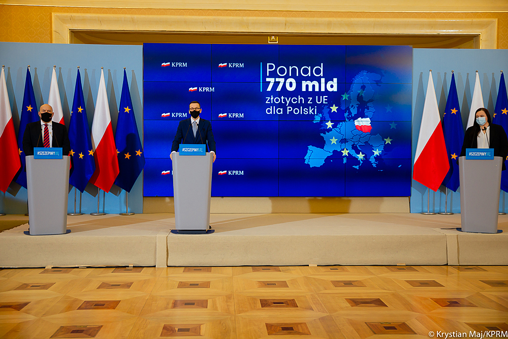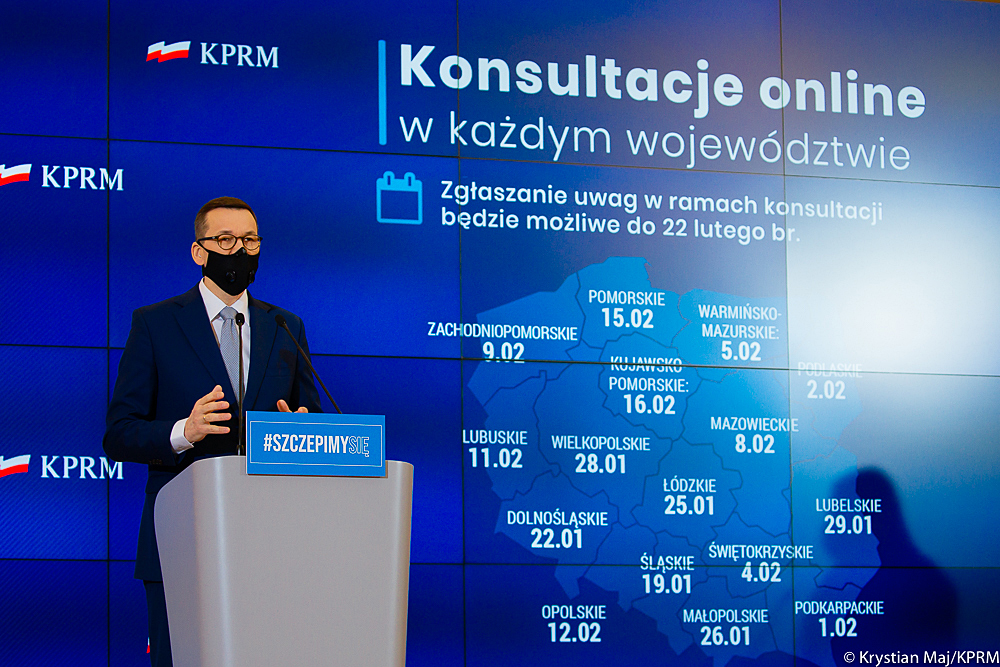 „Przystępujemy do konsultacji społecznych i inwestowania potężnych środków unijnych. Chcemy je przeznaczyć przede wszystkim na odbudowę po epidemii COVID-19” – zaznaczył premier Mateusz Morawiecki. „Umowa Partnerstwa obejmuje 76 mld euro, czyli ok. 350 mld zł. To środki na ochronę gospodarki oraz tworzenie nowych miejsc pracy” – dodał.