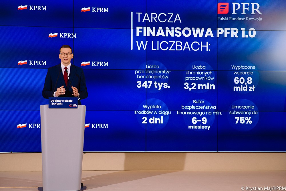 Polskie firmy, które z powodu pandemii musiały ograniczyć lub zawiesić swoją działalność, mogą liczyć na wsparcie rządu. Polska otrzymała zgodę Komisji Europejskiej na zaangażowanie krajowych środków finansowych w różnego rodzaju instrumenty wspierające firmy. Tarcza Finansowa Polskiego Funduszu Rozwoju 2.0, to łącznie ok. 35 mld zł na pomoc dla przedsiębiorców. Z tego ok. 13 mld zł trafi do mikro, małych i średnich przedsiębiorstw. Tarcza Finansowa Polskiego Funduszu Rozwoju, a także Tarcza Antykryzysowa są realnym wsparciem dla polskich przedsiębiorców. Od początku epidemii COVID-19 do polskich firm trafiło już ok. 168 mld zł – z czego ponad 60 mld zł w ramach Tarczy Finansowej PFR 1.0.