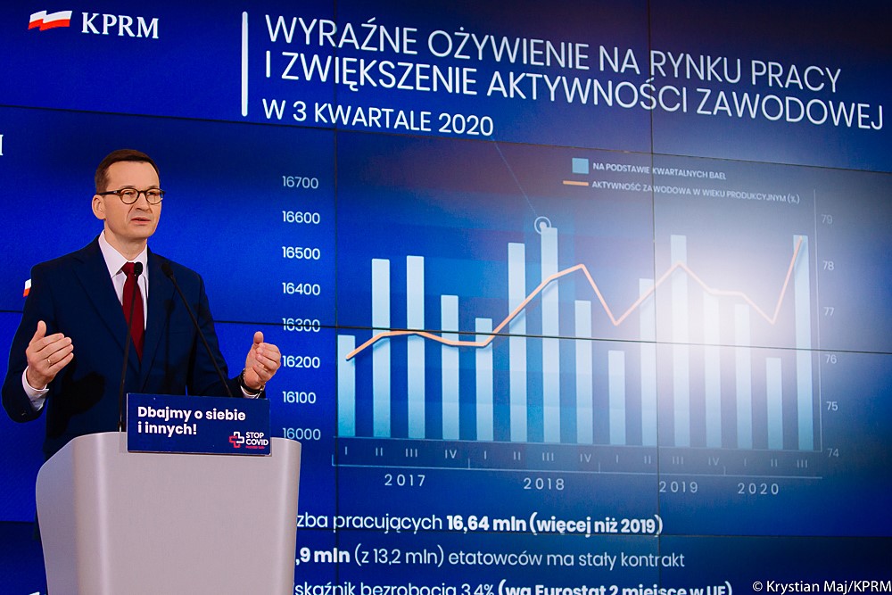 Prognozy Komisji Europejskiej pokazują, że z obecnego kryzysu Polska ma szansę wyjść lepiej niż większość państw Unii Europejskiej. Prognozy przewidują łagodny spadek PKB na tle pozostałych państw członkowskich UE. Co ważne, w trzecim kwartale 2020 r. nastąpiło wyraźne ożywienie na rynku pracy i zwiększenie aktywności zawodowej. Polska odnotowała drugie najniższe bezrobocie w całej Unii Europejskiej.