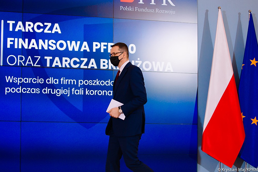 „W okolicznościach jakie mamy teraz - druga i trzecia fala pandemii, przed którą ostrzegają nas specjaliści - przygotowaliśmy tarczę dla przedsiębiorstw szczególnie dotkniętych. Proponowane rozwiązania z jednej strony mają rekompensować koszty, a z drugiej być zastrzykiem finansowym dla najbardziej poszkodowanych” – poinformował premier Mateusz Morawiecki.