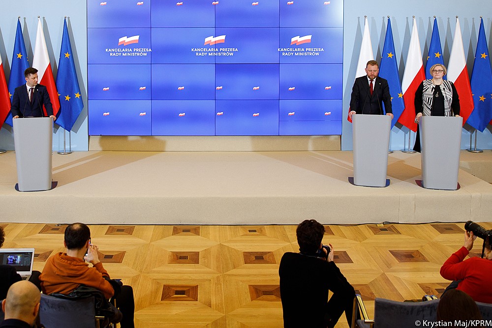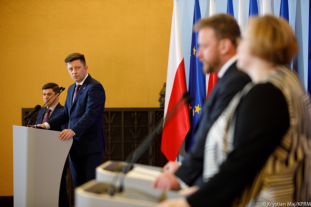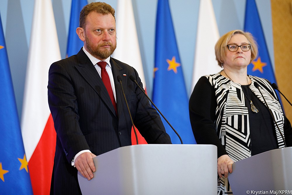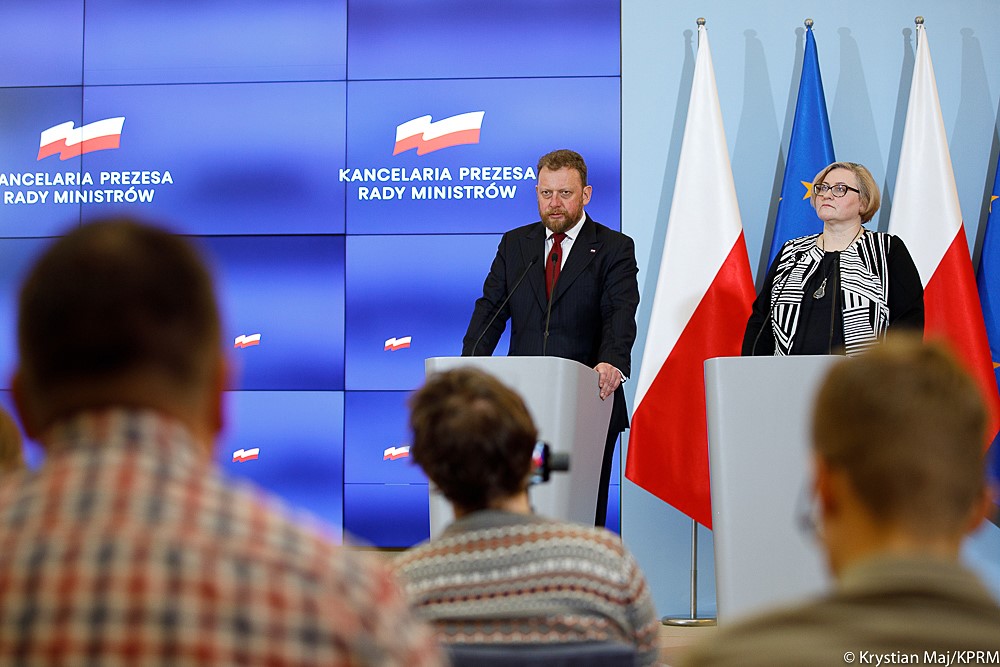 Podczas konferencji szefowi resortu zdrowia towarzyszyli minister Michał Dworczyk oraz Iwona Paradowska-Satnkiweicz konsultant krajowy w dziedzinie epidemiologii.
