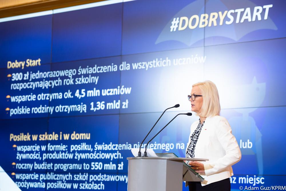 Minister rodziny, pracy i polityki społecznej Bożena Borys-Szopa zaznaczyła, że bezpieczeństwo dzieci w szkołach to również bezpieczeństwo ekonomiczne
