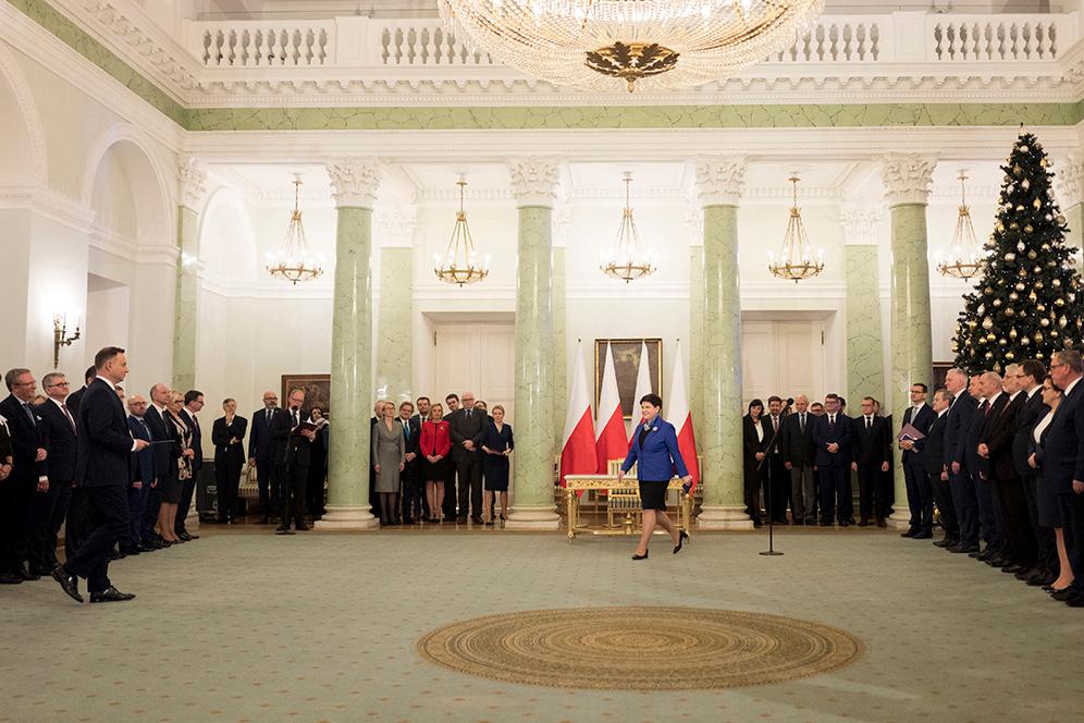 W poniedziałek prezydent Rzeczypospolitej Polskiej Andrzej Duda powołał Mateusza Morawieckiego na urząd Prezesa Rady Ministrów. Powołał też członków Rady Ministrów. Prezydent odebrał również przysięgę od premiera i nowo powołanych członków rządu.