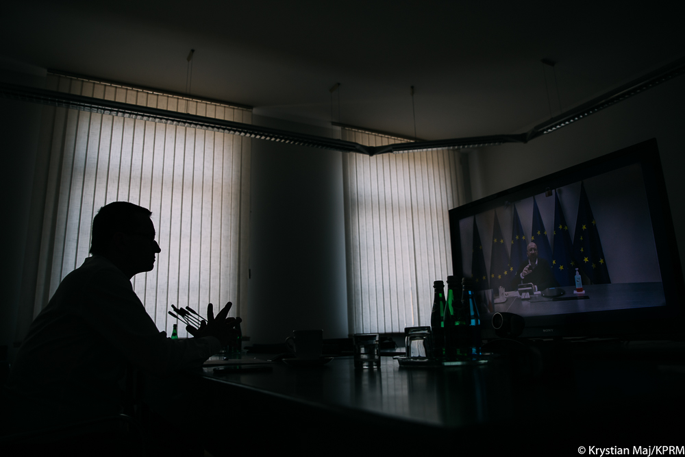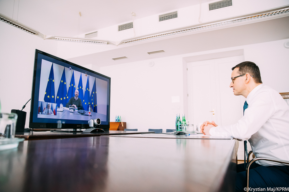 Telekonferencja premiera z Przewodniczącym Rady Europejskiej dotyczyła koniecznych działań UE, które mają być skuteczną i skoordynowaną reakcją na gospodarcze skutki pandemii. Polska uważa, że Europie potrzebny jest nowy plan Marshalla.