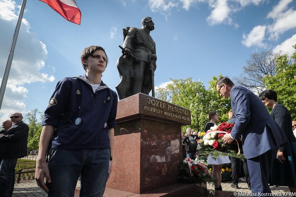 Podczas wizyty szef rządu złożył także kwiaty pod pomnikiem Marszałka Józefa Piłsudskiego w Mławie.