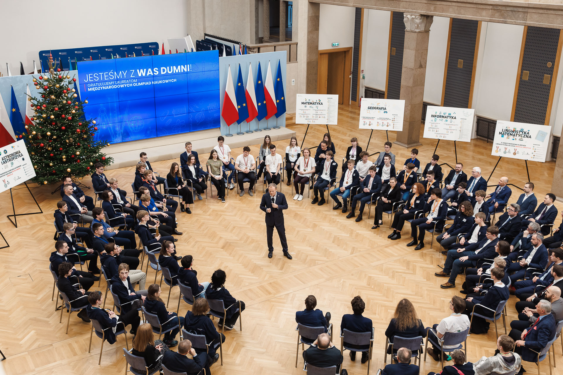 Premier Donald Tusk oraz Minister Edukacji Barbara Nowacka spotkali się w KPRM z laureatami międzynarodowych olimpiad naukowych, aby podsumować ich niezwykłe osiągnięcia w 2024 roku. Reprezentanci Polski zdobyli łącznie 77 medali w 10 kategoriach naukowych. Polscy uczniowie są jedną z najbardziej utytułowanych ekip na świecie w rywalizacji przedmiotowej. „Traktujemy wszystkie uczennice i uczniów jak największy skarb narodowy” – mówił podczas spotkania Donald Tusk.