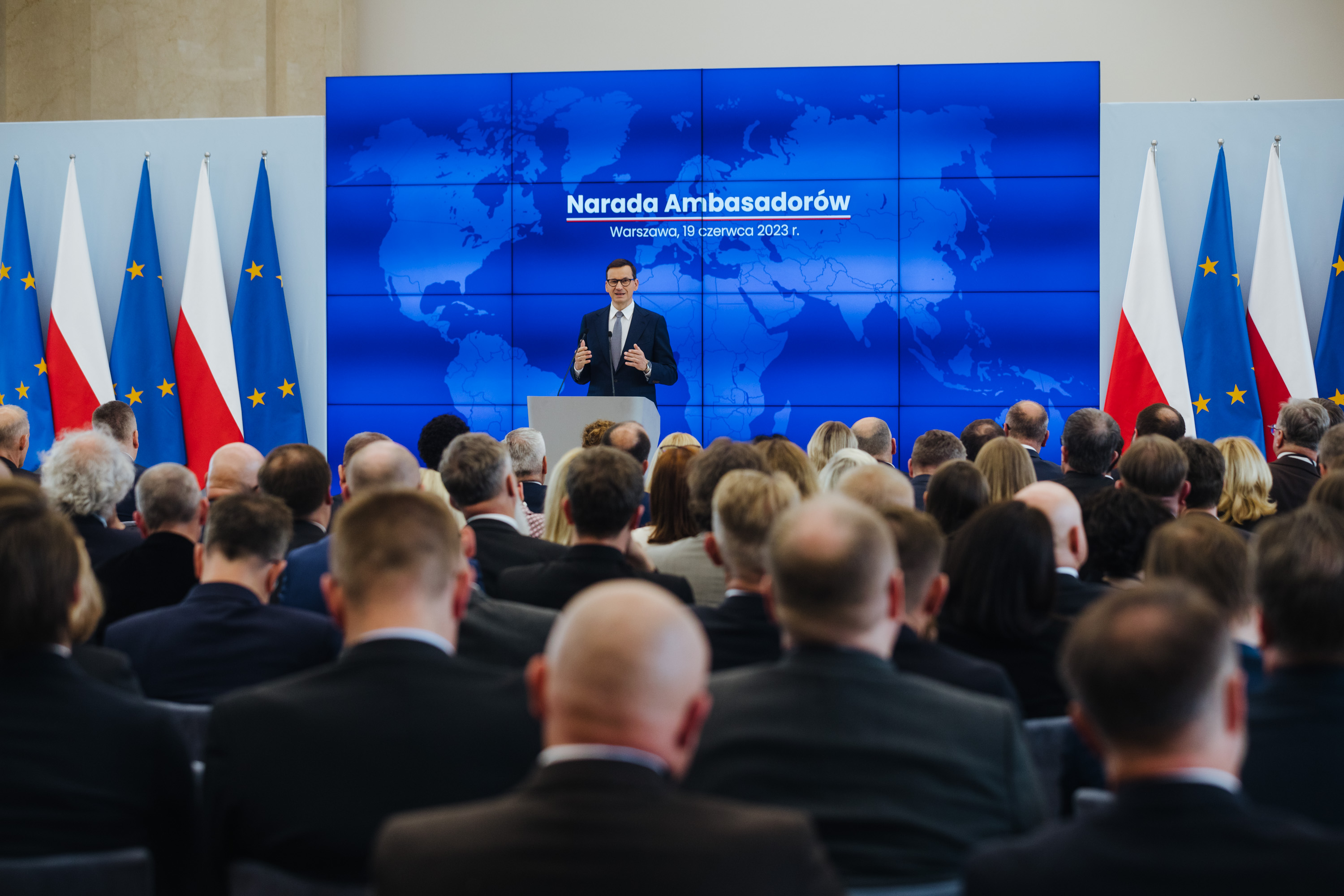 – Musimy ten czas dobrze wykorzystać. Musimy wykorzystać go dla umocnienia naszej pozycji na arenie międzynarodowej, do przedstawienia naszych racji – zwrócił się premier do polskich dyplomatów.
