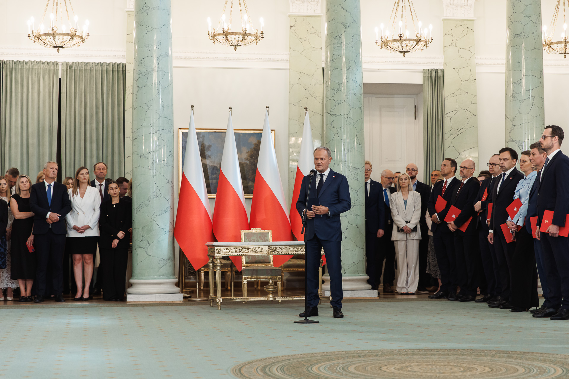 Członkowie i członkinie nowej Rady Ministrów zostali oficjalnie zaprzysiężeni podczas uroczystości w Pałacu Prezydenckim. „Każdego dnia od nowa zaczyna się to, co jest służbą Ojczyźnie” - mówił szef rządu. Premier Donald Tusk podziękował odchodzącym ministrom za efekty ich pracy i przypomniał, że nowy rząd czeka kontynuacja najważniejszej misji, jaką jest służba Ojczyźnie i poprawa życia Polaków.