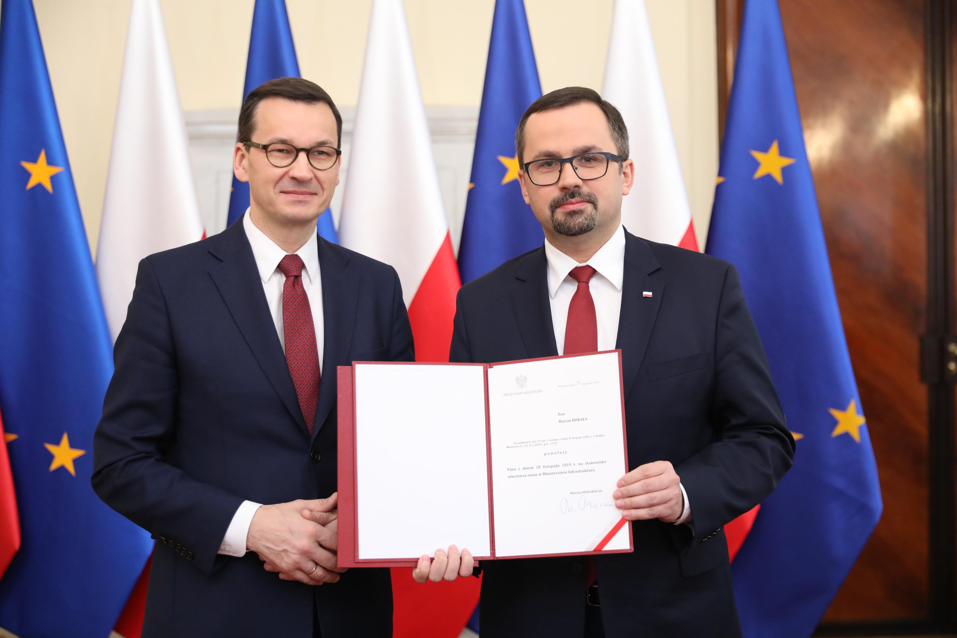 Premier Mateusz Morawiecki powołał Marcina Horałę na sekretarza stanu w Ministerstwie Infrastruktury i Pełnomocnika Rządu ds. Centralnego Portu Komunikacyjnego.