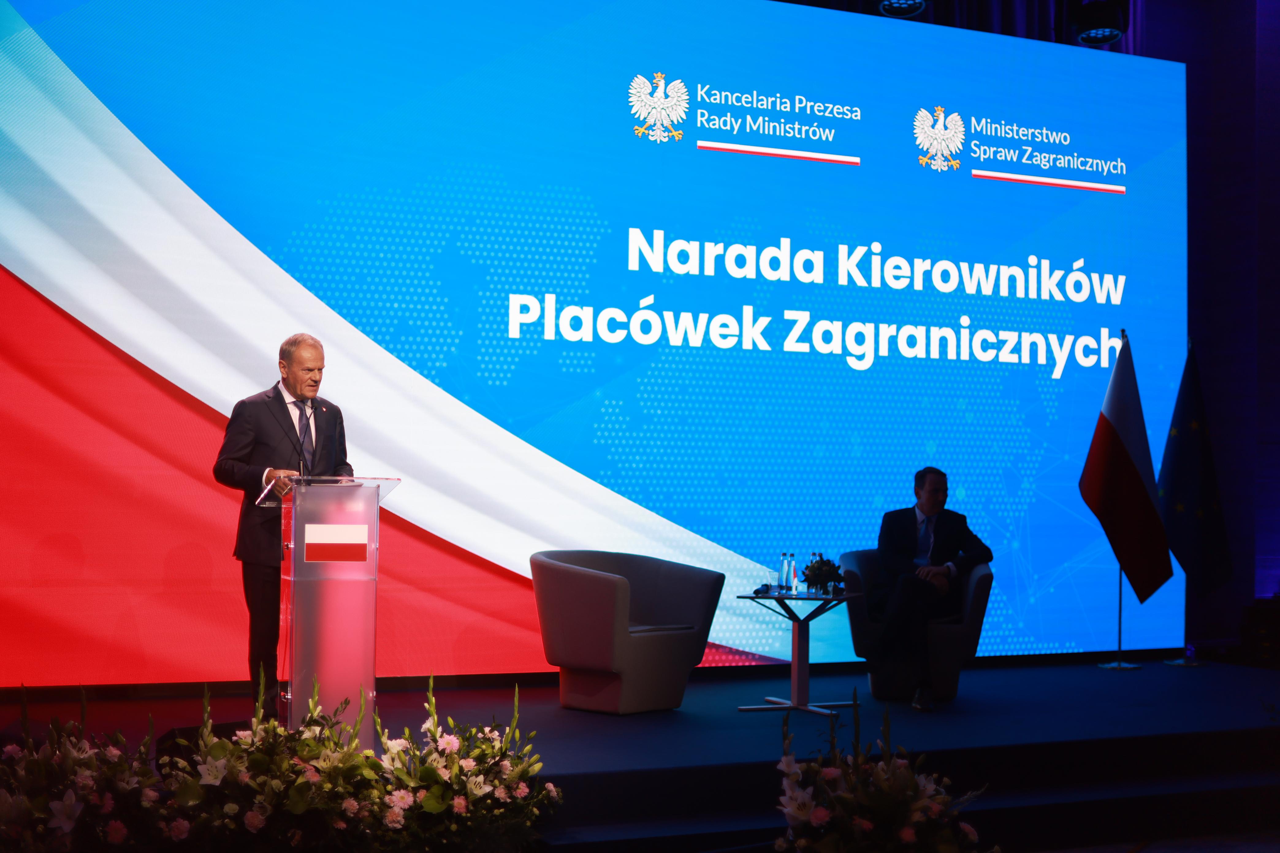 Donald Tusk zapewnił zebranych, że rząd zdaje sobie sprawę z tego, jak trudną misję mają do wykonania kierownicy placówek zagranicznych RP. Aktualna sytuacja geopolityczna generuje konkretne wyzwania.