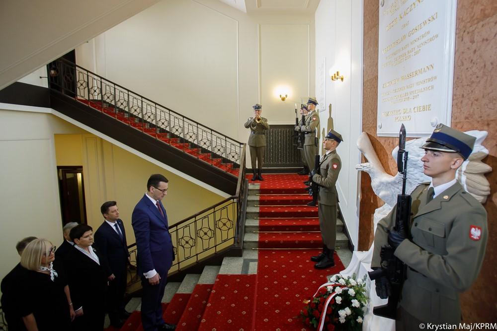 Szef rządu wraz z ministrami złożył dziś rano w KPRM wieńce przed tablicami upamiętniającymi członków Rady Ministrów i pracowników KPRM, którzy zginęli 10 kwietnia 2010 r. w katastrofie lotniczej pod Smoleńskiem.