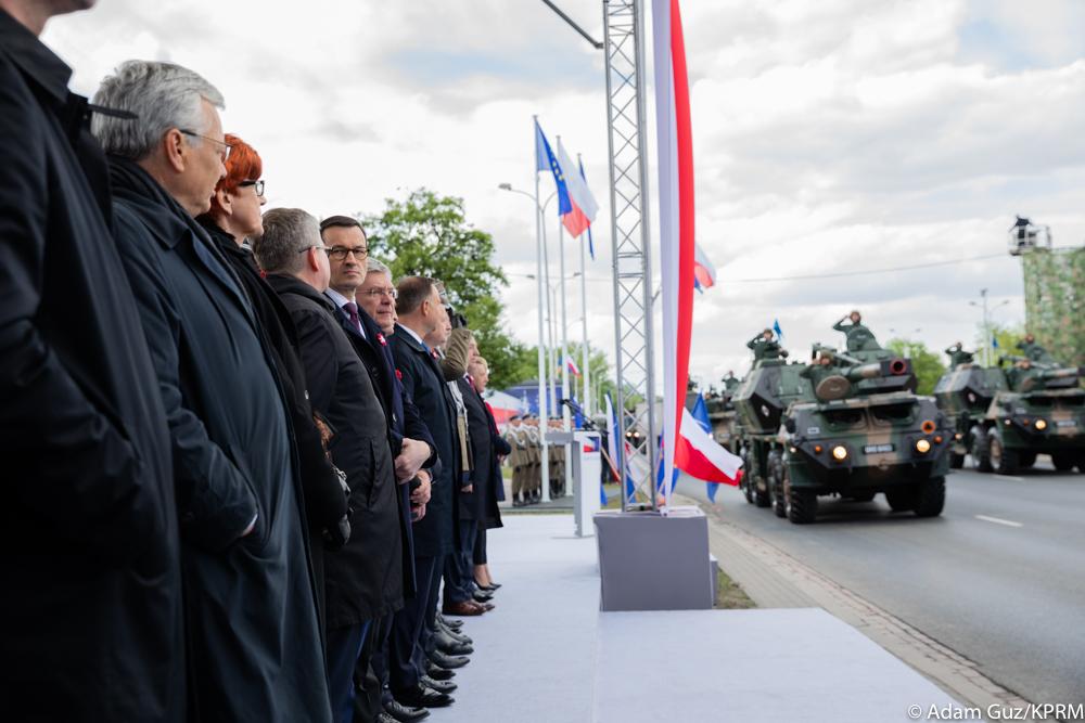 Premier Mateusz Morawiecki wziął też udział w defiladzie wojskowej, która odbyła się na warszawskiej Wisłostradzie. Uczestniczyli w niej m. in. Żołnierze Wojska Polskiego, żołnierze wojsk sojuszniczych oraz funkcjonariusze służb mundurowych. Defiladowym krokiem przemaszerowało ok. 2 tys. osób, zaprezentowanych zostało 200 pojazdów oraz 80 statków powietrznych.
