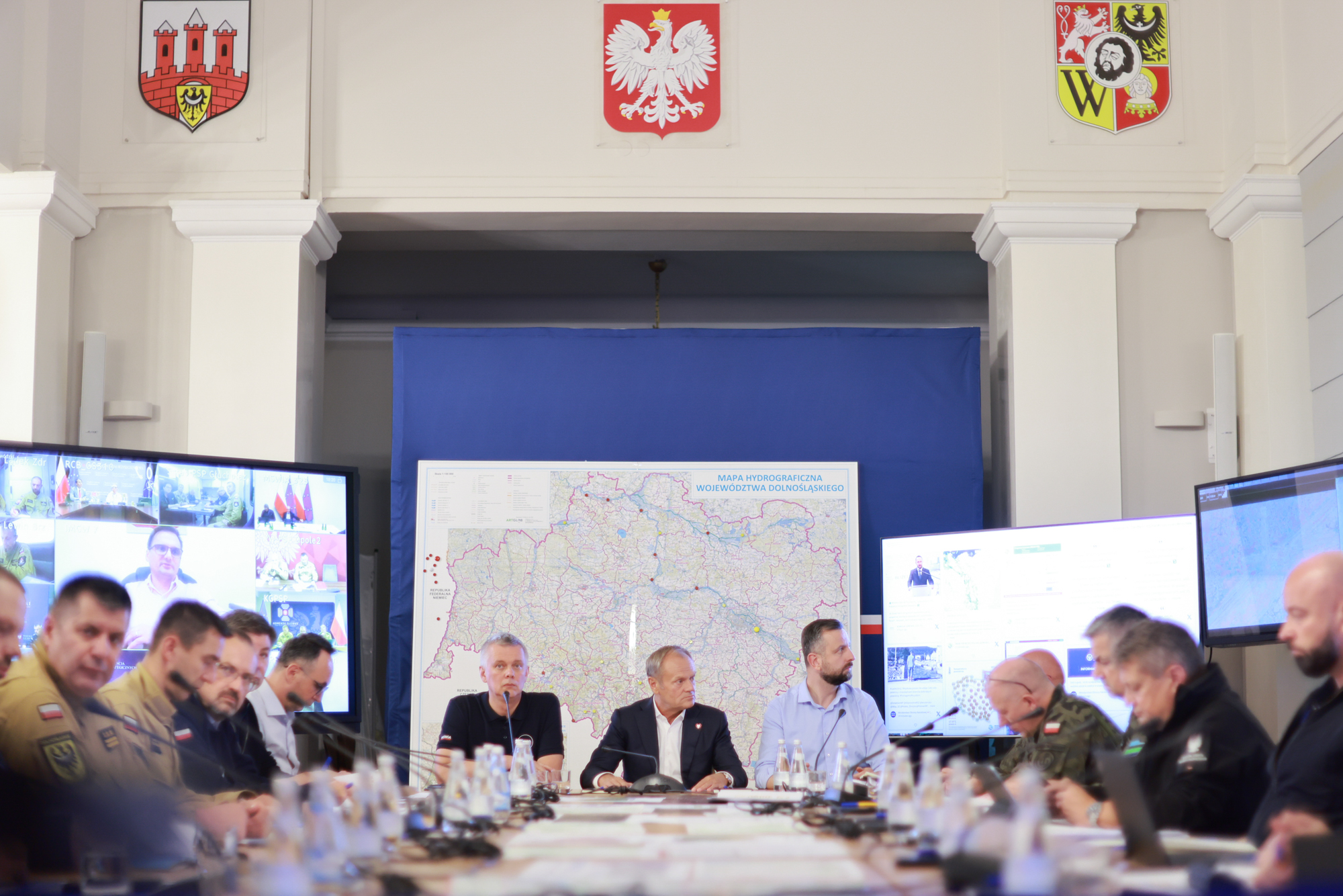 Premier Donald Tusk wziął udział w posiedzeniu sztabu kryzysowego we Wrocławiu. Prezes Rady Ministrów zapowiedział realizację inwestycji w infrastrukturę przeciwpowodziową w ramach programu „Odbudowa plus”, co pomoże zmniejszyć skalę ewentualnych zniszczeń w przyszłości. Rząd wzmocni także Wojska Obrony Terytorialnej, które okazały się wielkim wsparciem w ostatnich dniach.