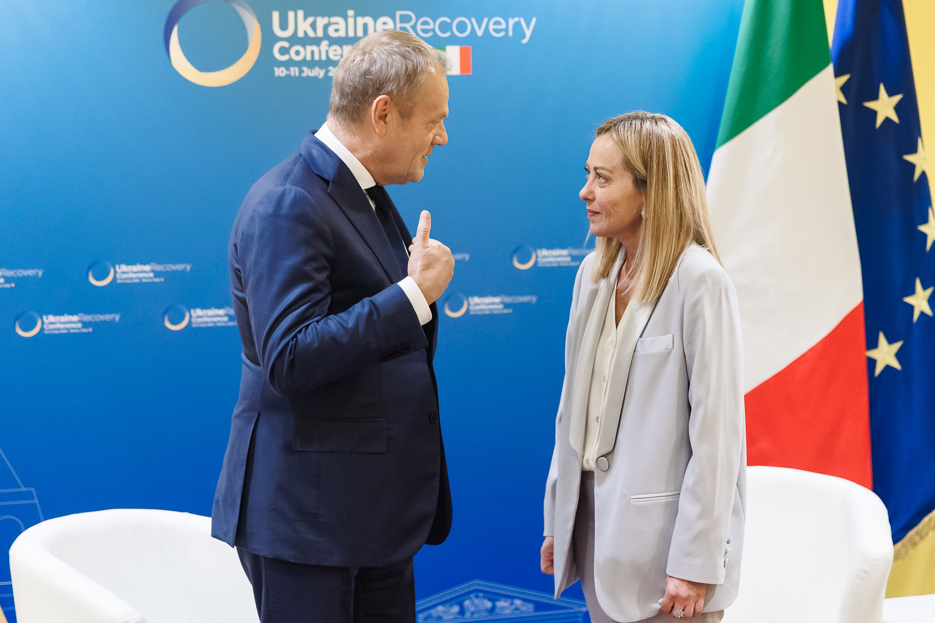 Szef polskiego rządu spotkał się również z Premier Włoch Giorgią Meloni oraz Prezydentem Ukrainy Wołodymyrem Zełenskim. W trakcie spotkania rozmawiano m.in. o ułatwieniach dla dużych przedsięwzięć z udziałem np. Orlenu, LOT-u, polskich banków będących spółkami Skarbu Państwa, a także innych prywatnych podmiotów, które potrzebują rządowego wsparcia.