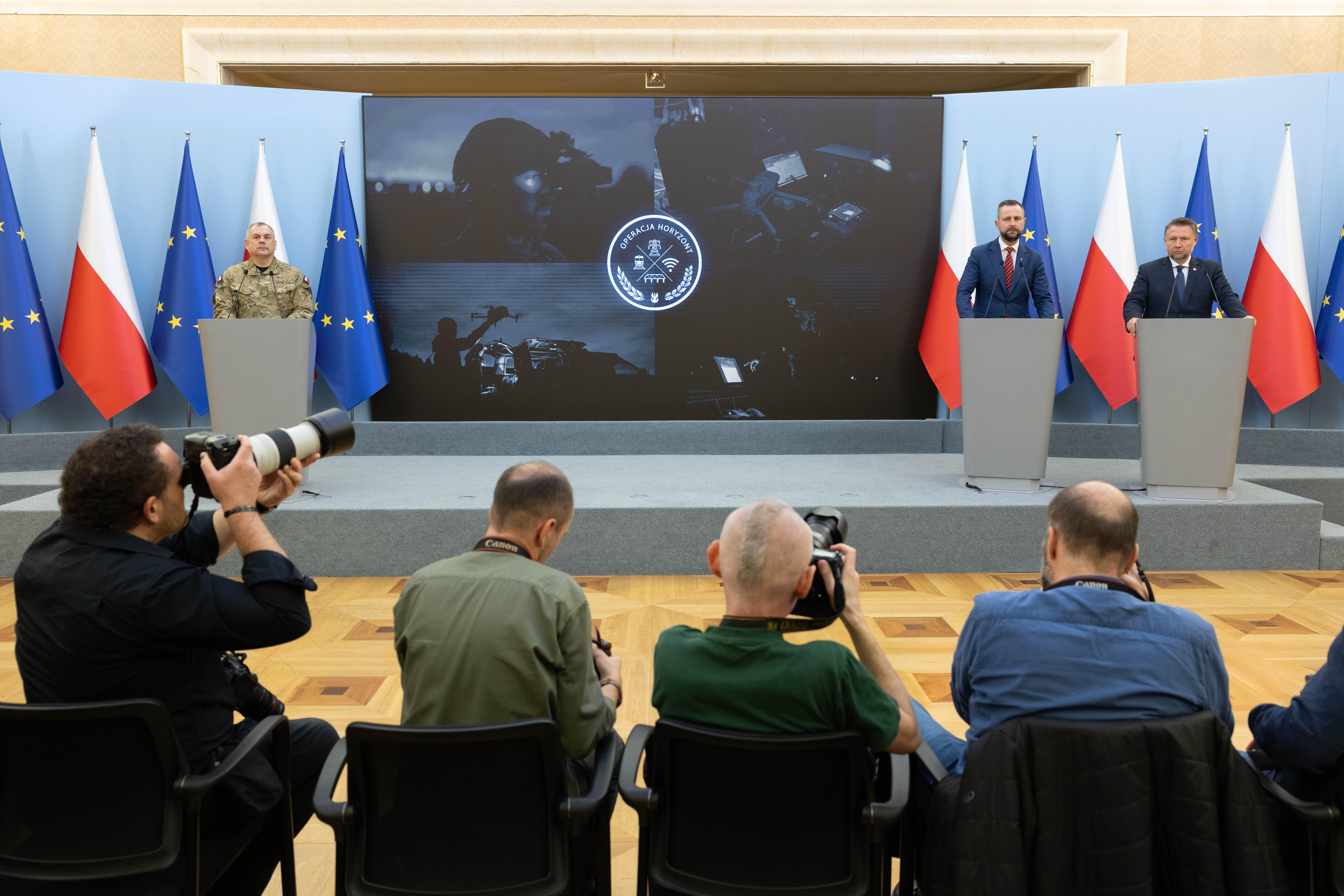 „Polska jest przygotowana i użyje wszelkich zasobów, które posiada, we wszystkich ministerstwach, we wszystkich agendach państwowych, aby bronić bezpieczeństwa swoich obywateli i bezpieczeństwa swojej infrastruktury” - powiedział Minister Spraw Wewnętrznych i Administracji Marcin Kierwiński na konferencji prasowej w KPRM. Wspólnie z Wicepremierem Władysławem Kosiniakiem-Kamyszem oraz Szefem Sztabu Generalnego Wojska Polskiego Wiesławem Kukułą zaprezentowali operację pod kryptonimem Horyzont. Jej celem jest przeciwdziałanie aktom dywersji i podnoszenie poziomu bezpieczeństwa obywateli. W tej wspólnej akcji służb weźmie udział ok. 10 tysięcy żołnierzy. To odpowiedź na toczoną wobec Polski wojnę hybrydową.