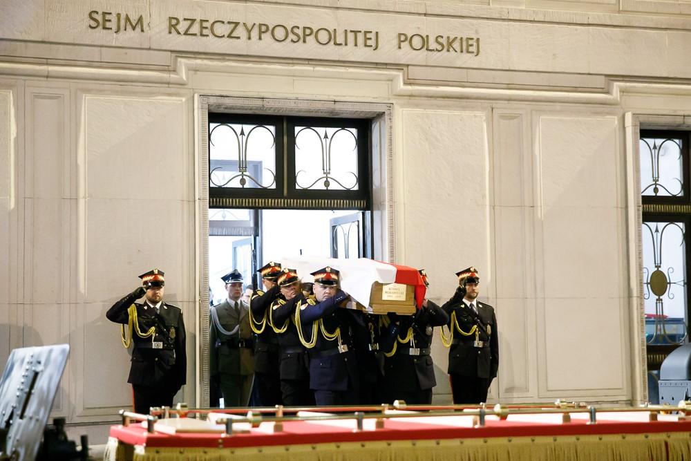 W piątek odbyła się ceremonia wystawienia trumny z ciałem śp. Kornela Morawieckiego w Sali Kolumnowej Sejmu. W ciągu dnia przy trumnie pełniona była warta honorowa, a wieczorem uroczysty kondukt pogrzebowy z udziałem rodziny oraz najważniejszych osób w państwie przeszedł do Katedry Polowej.