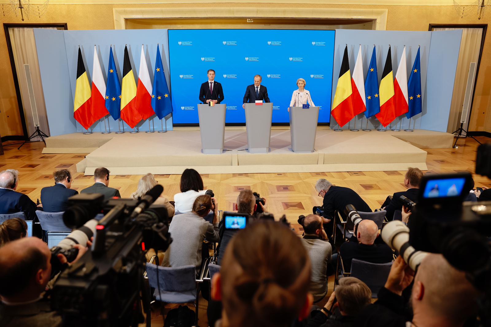 Premier Donald Tusk spotkał się w Warszawie z Przewodniczącą Komisji Europejskiej Ursulą von der Leyen oraz Premierem Belgii Alexandrem De Croo. Szefowa KE przekazała bardzo dobre wiadomości dla Polski. Niebawem do naszego kraju trafi do 137 mld euro. Oprócz środków unijnych, liderzy omówili kwestie związane z interesami polskich rolników, wojną w Ukrainie, a także zbliżającą się polską prezydencją w Radzie UE.